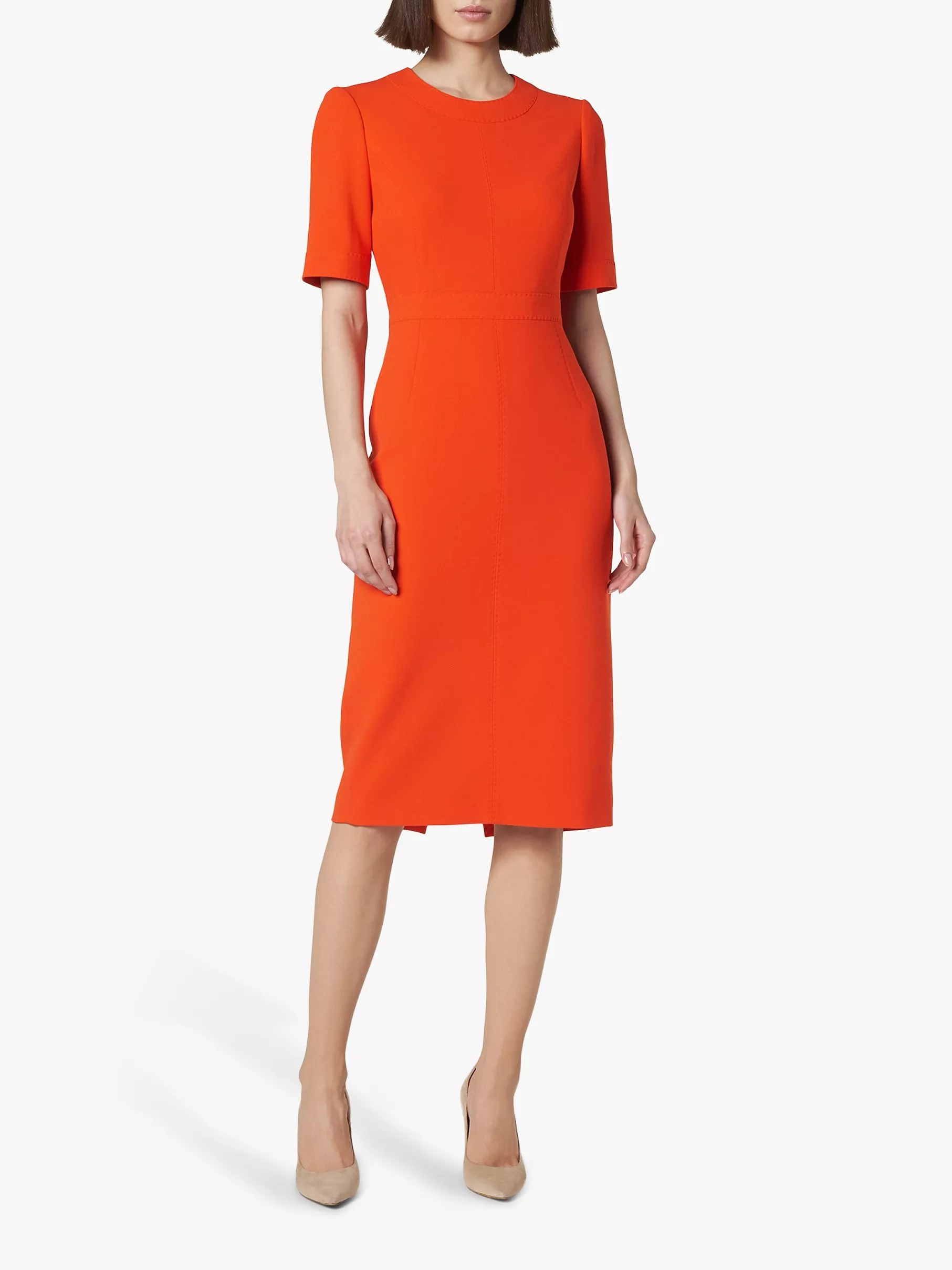 Channel a chic and sophisticated vibe this season in the Elene dress from L.K.Bennett. Cut from lightweight fabric with a hint of stretch and fitted through the body, it flows into a shift style with stitched detailing around the waist and neckline for an elegant silhouette. Style with a pair of pointed courts for a professional finish.
