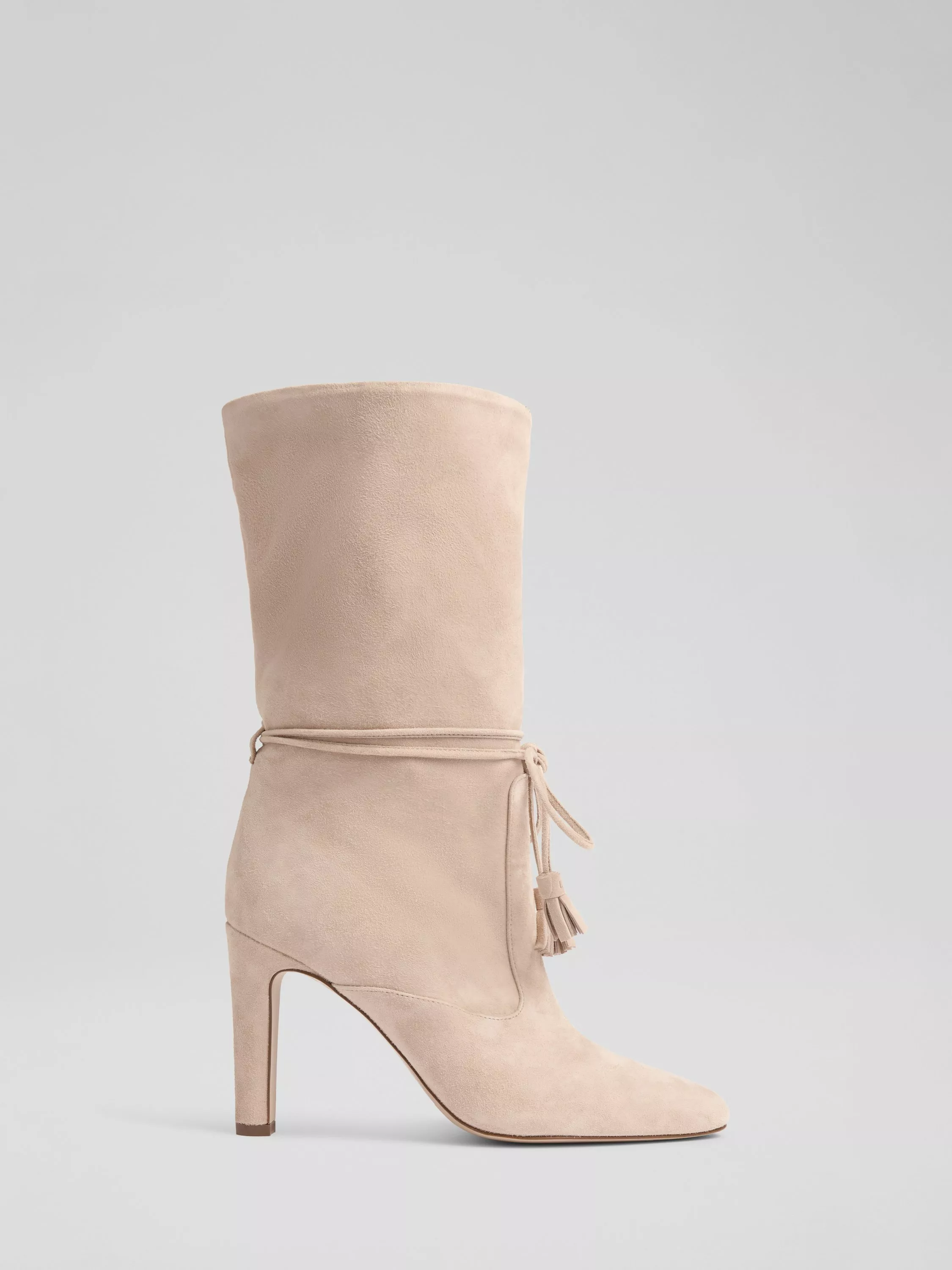 Meet Eliza, L.K.Bennett's suede ankle boots. Featuring a timeless almond toe and ruched detailing, this pair also incorporates playful tassels that add character with every step.