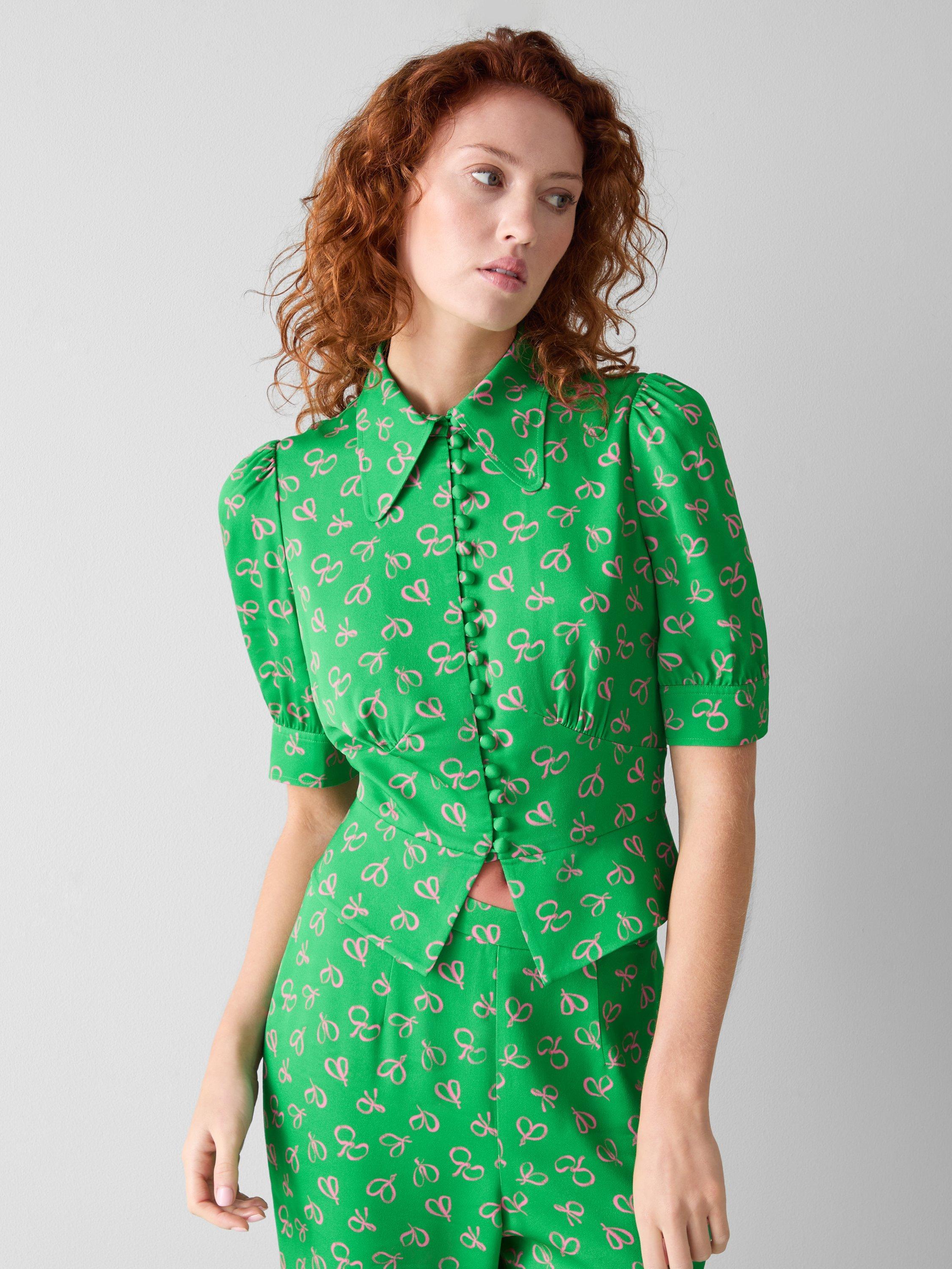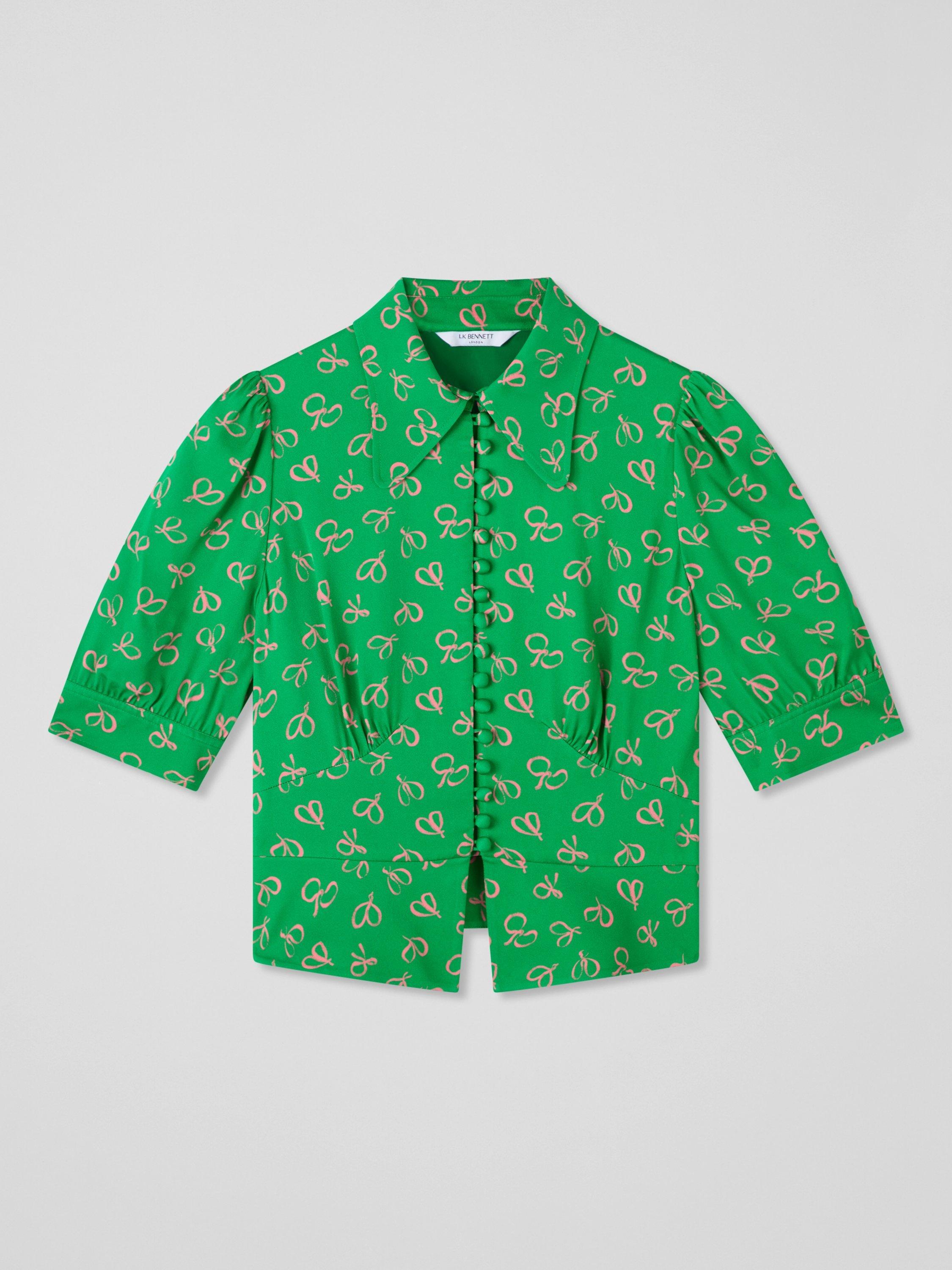 L.K.BennettElsie Bow Print Top, Green/Multi