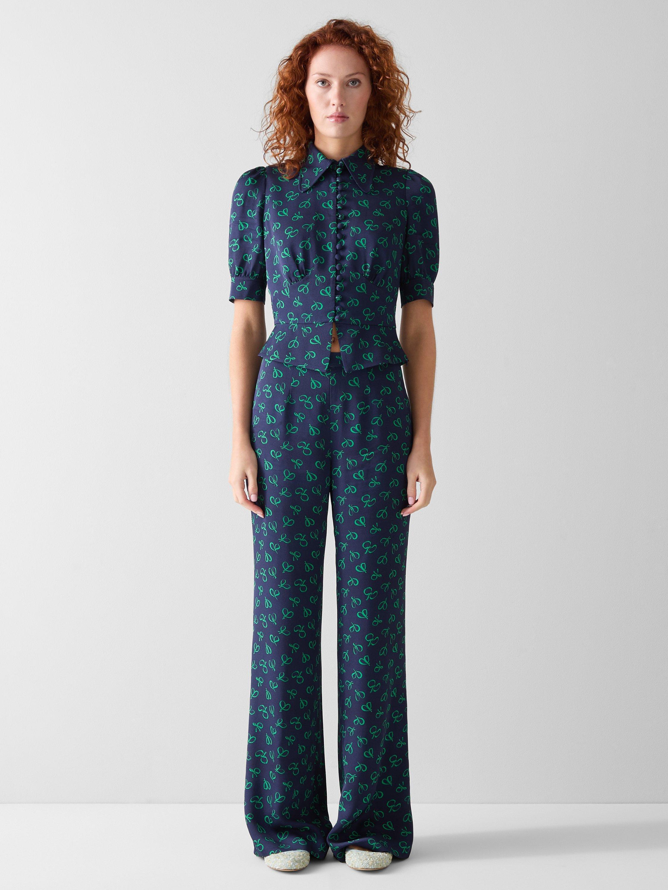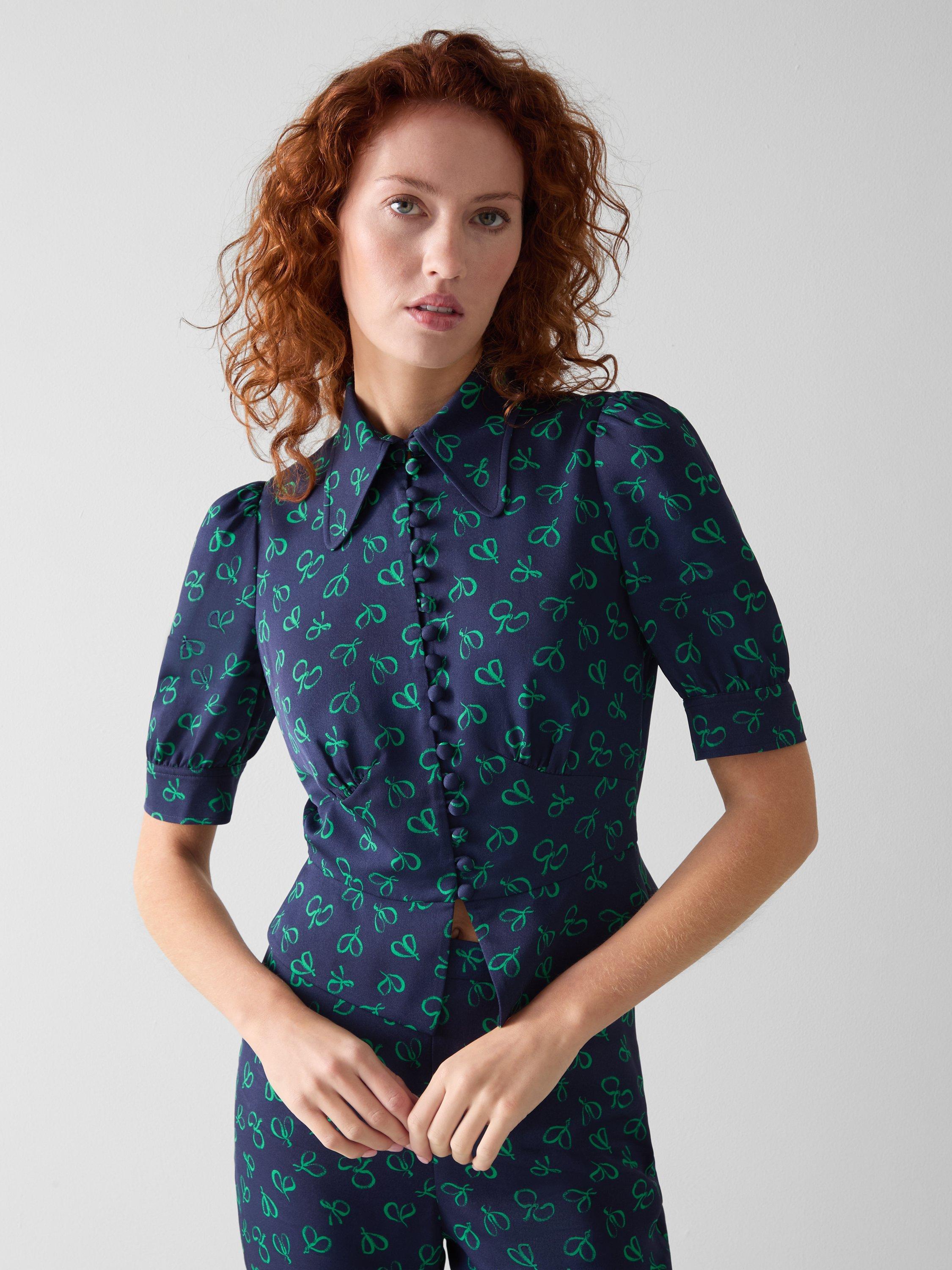 The Elsie blouse features an elegant bow detail and statement volume sleeves. Crafted with a conversational pattern, this piece features an elegant collar that frames the neckline beautifully. The distinctive bow adds a feminine touch, while the generous sleeves create dramatic silhouette interest. Style with tailored trousers and heels for elegant workwear, or pair with your favourite denim for a polished weekend look that transitions effortlessly from day to evening occasions.