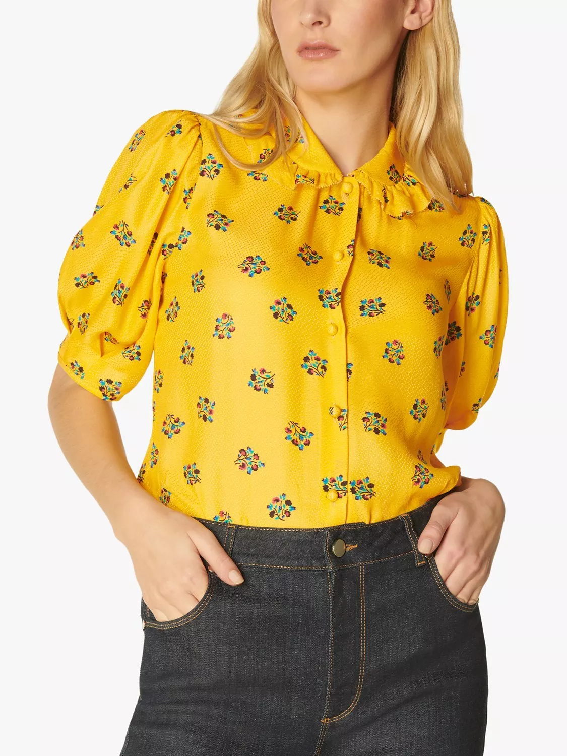 Bringing a neat addition to your wardrobe, this blouse from L.K.Bennett will brighten your wardrobe with its pretty floral print.