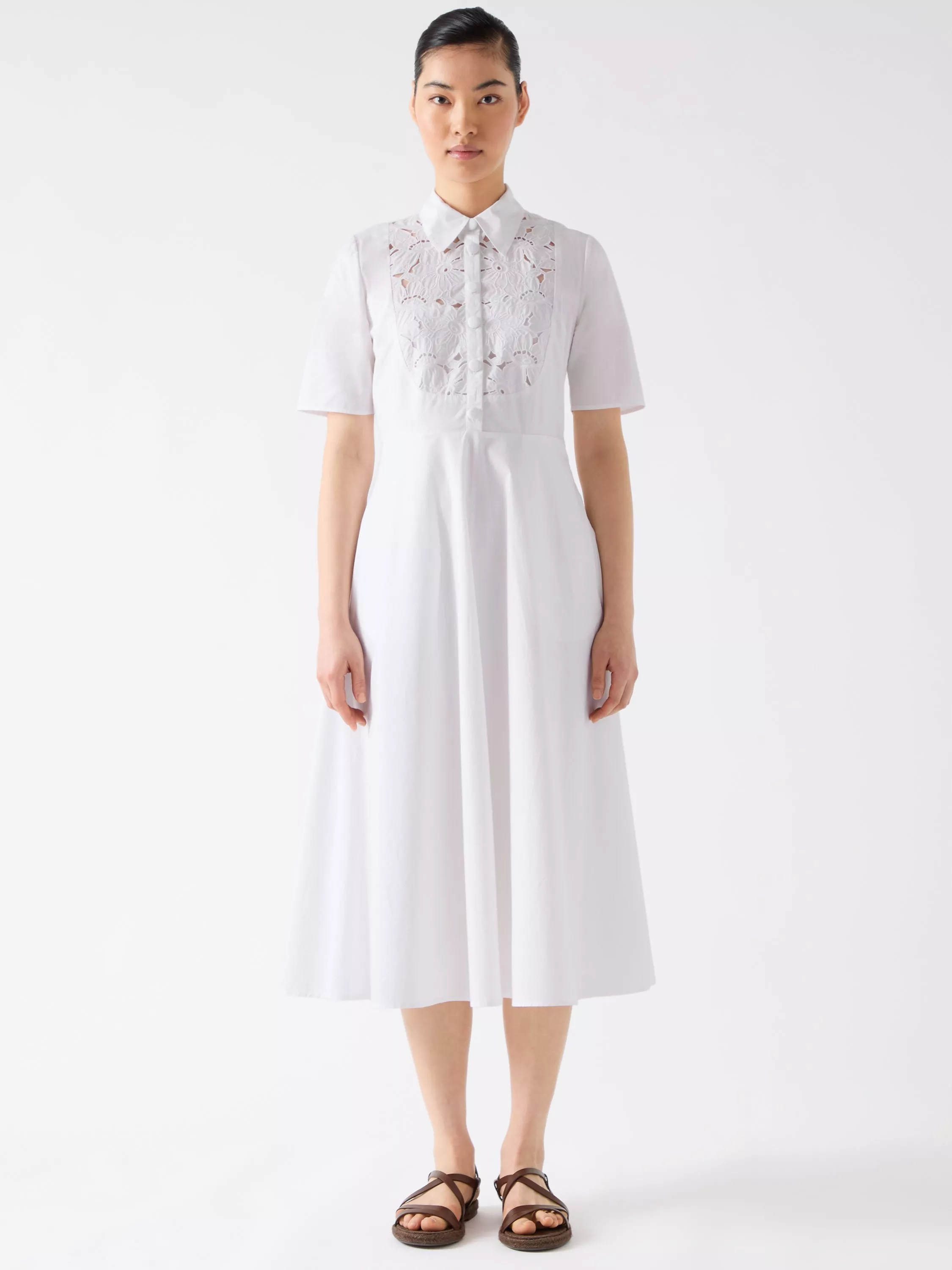 Carved out to a stunning shirt silhouette, this A-line maxi dress from L.K.Bennett is made from pure cotton with a full slip lining. With a button up collar neckline and short sleeves, the bodice is detailed with intricate embroidery while the slightly flared skirt is made with in-built seam pockets. From garden parties to summer weddings, this style has you covered.