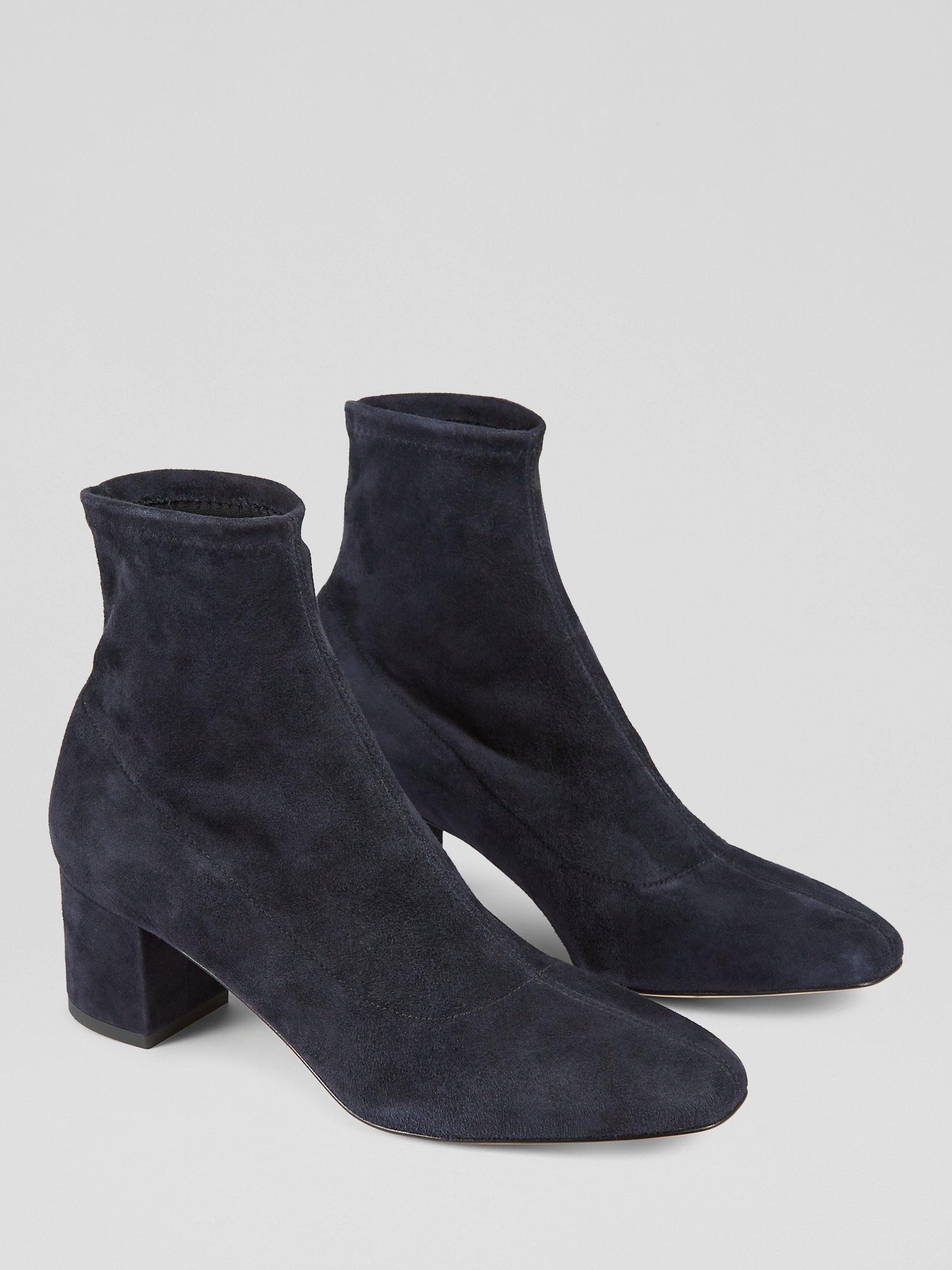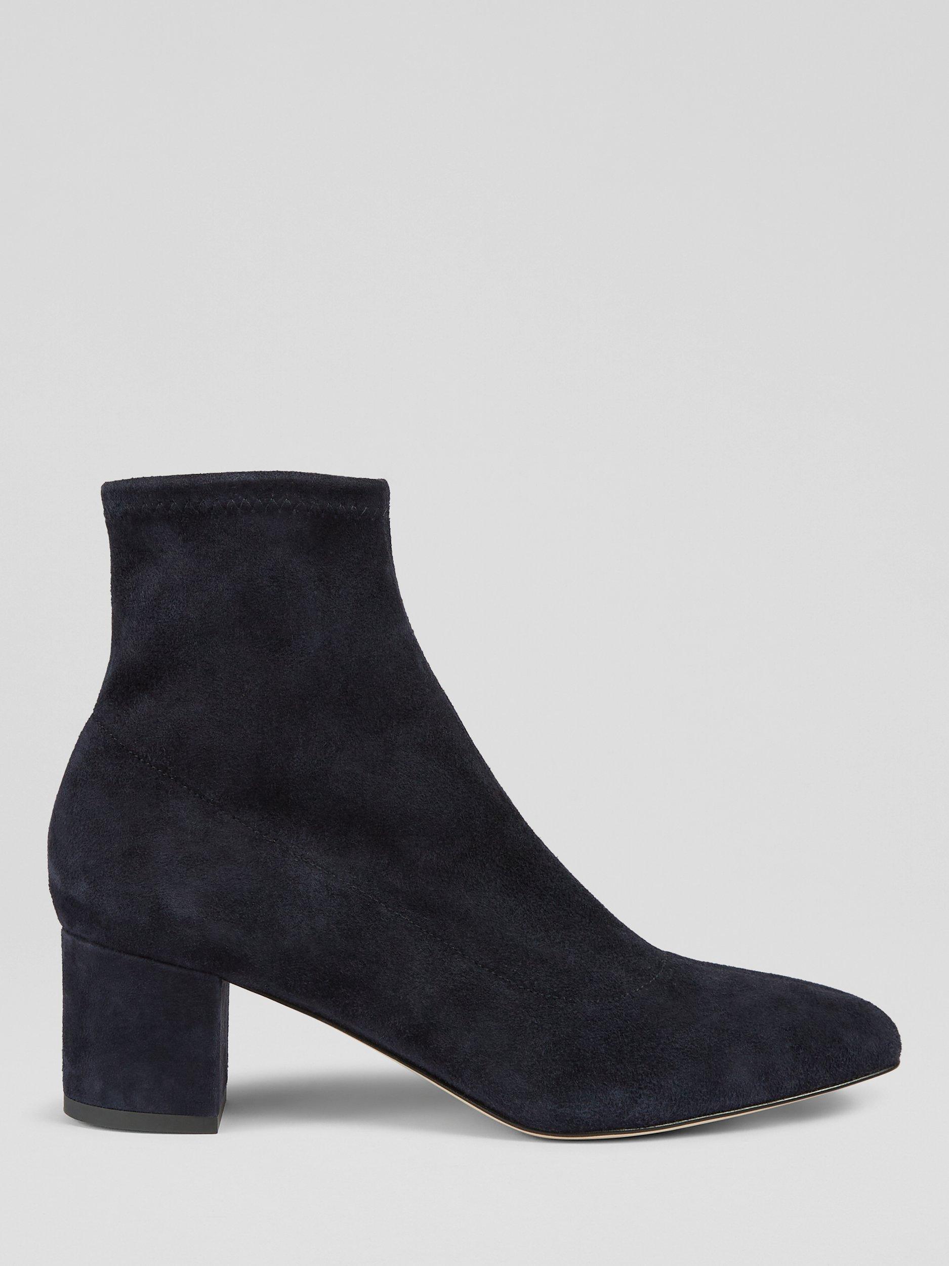 Immerse yourself in elegance with L.K.Bennett's Grove ankle boots, made in Italy from premium stretch suede. These boots provide a comfortable fit with a low block heel and a fashionable square toe. They have a robust, textured design with a leather lining, perfect for upgrading smart-casual ensembles. Combine them with tapered trousers or a midi skirt to accentuate their refined silhouette.