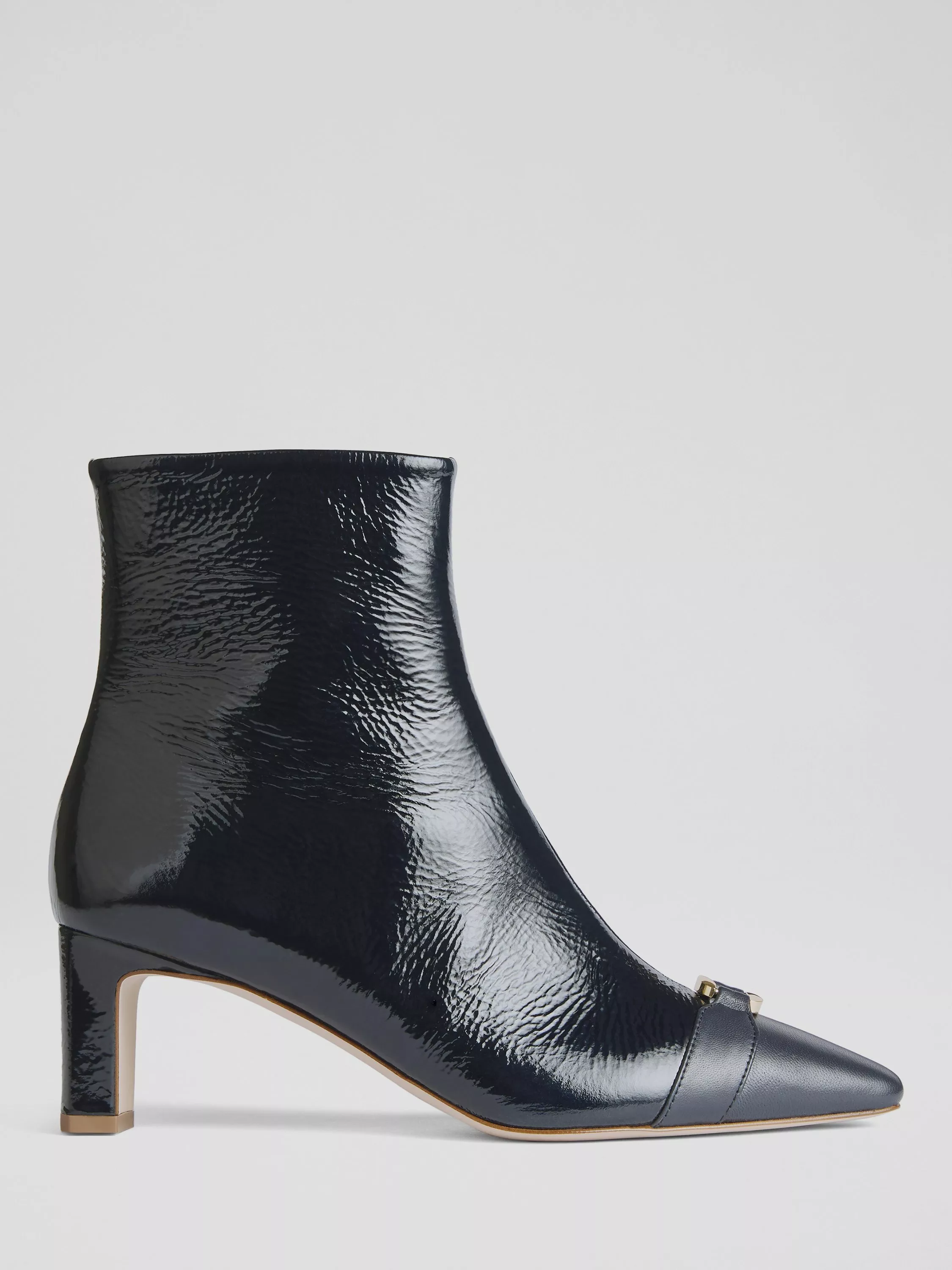 Crafted in Italy from patent leather that catches the light with every step, these statement-worthy ankle boots also feature a modern square toe.