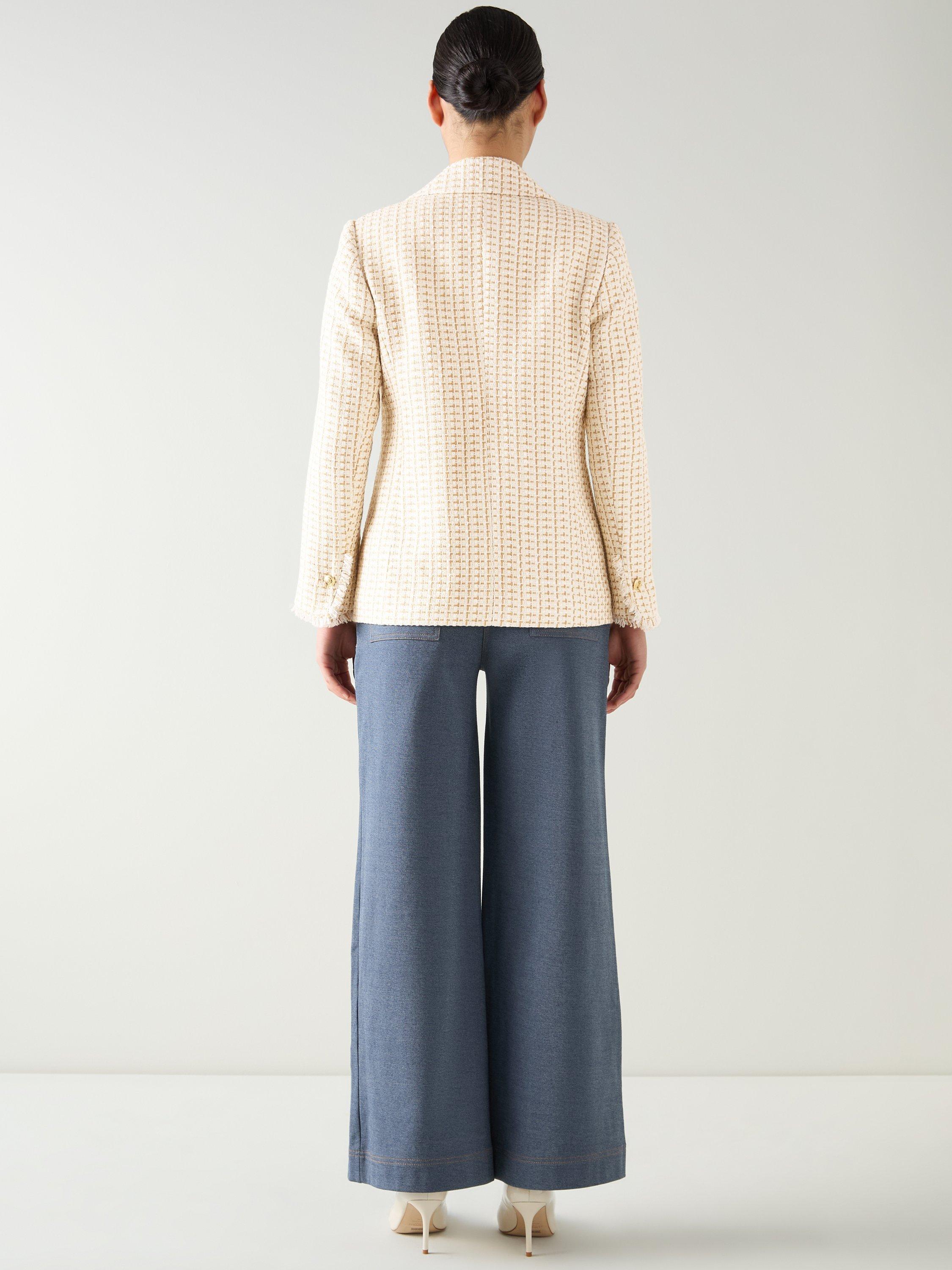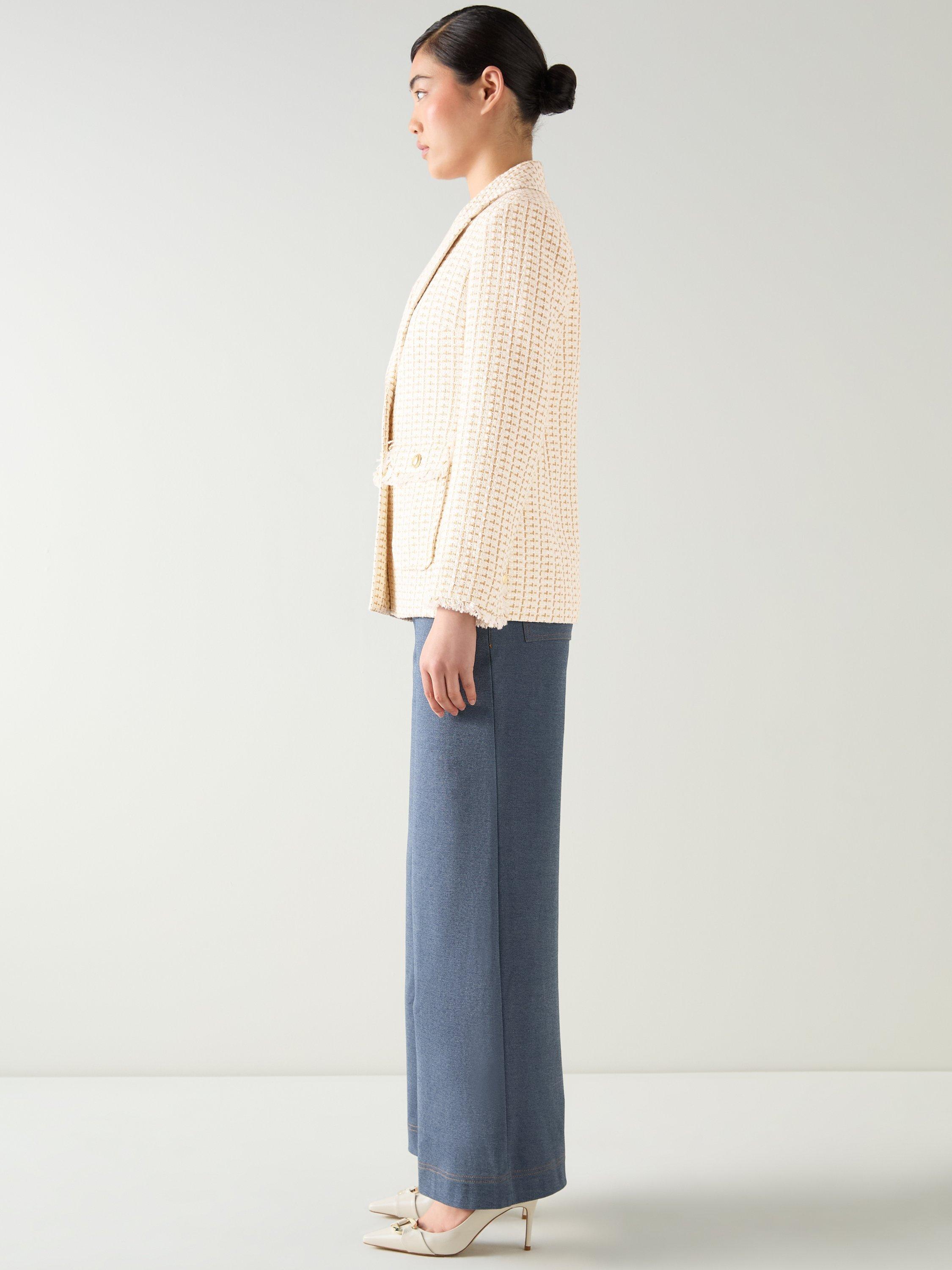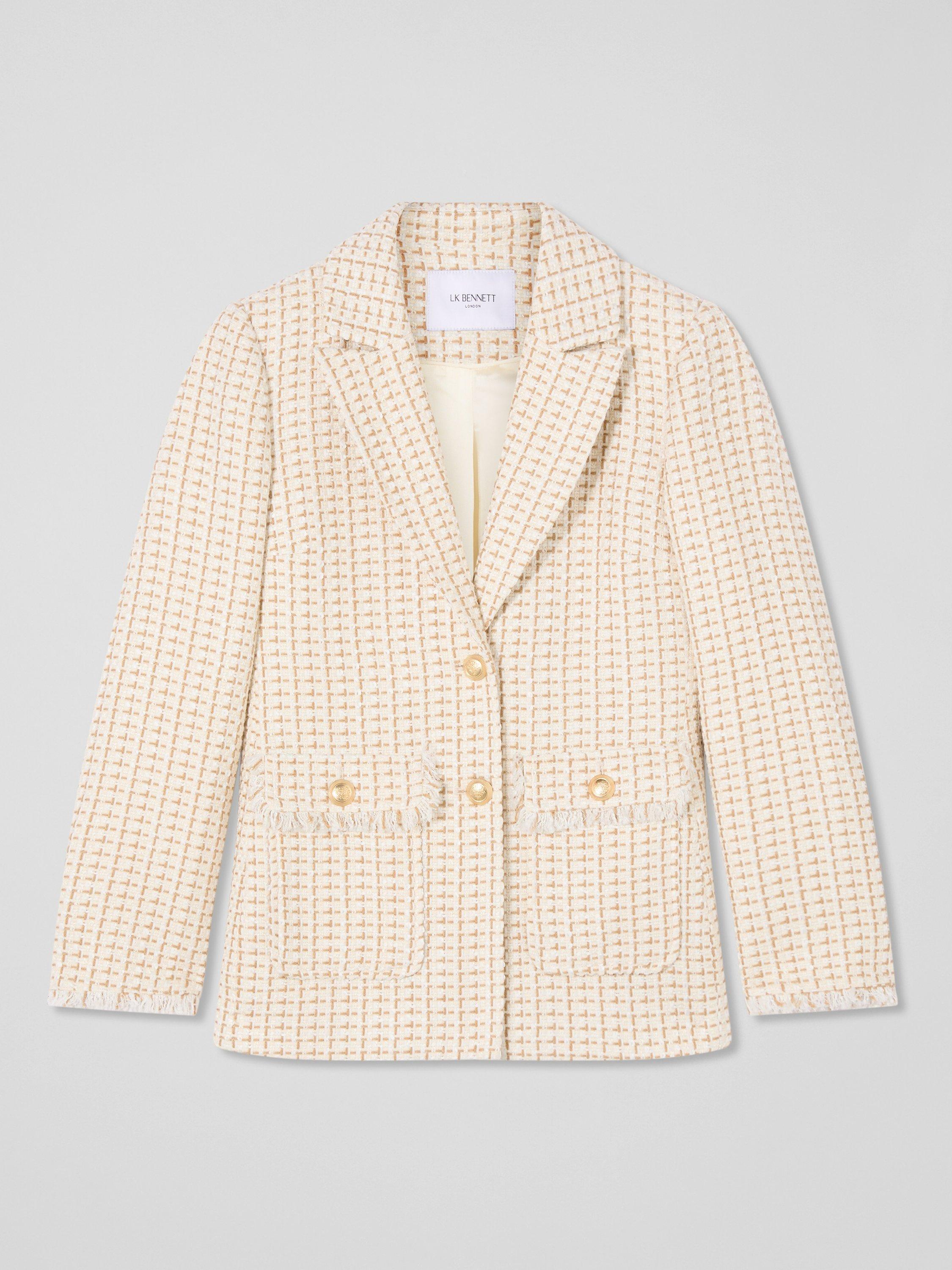 Meet Julia, a tweed check jacket in warm tones. This single-breasted design features distinctive front pockets and elegant metal plait buttons. Crafted from a quality blend, Julia showcases a classic collar and long sleeves. Perfect for smart casual occasions - pair with tailored trousers for the office or denim for weekends. The textured chequered pattern complements any ensemble, making this an essential wardrobe addition.