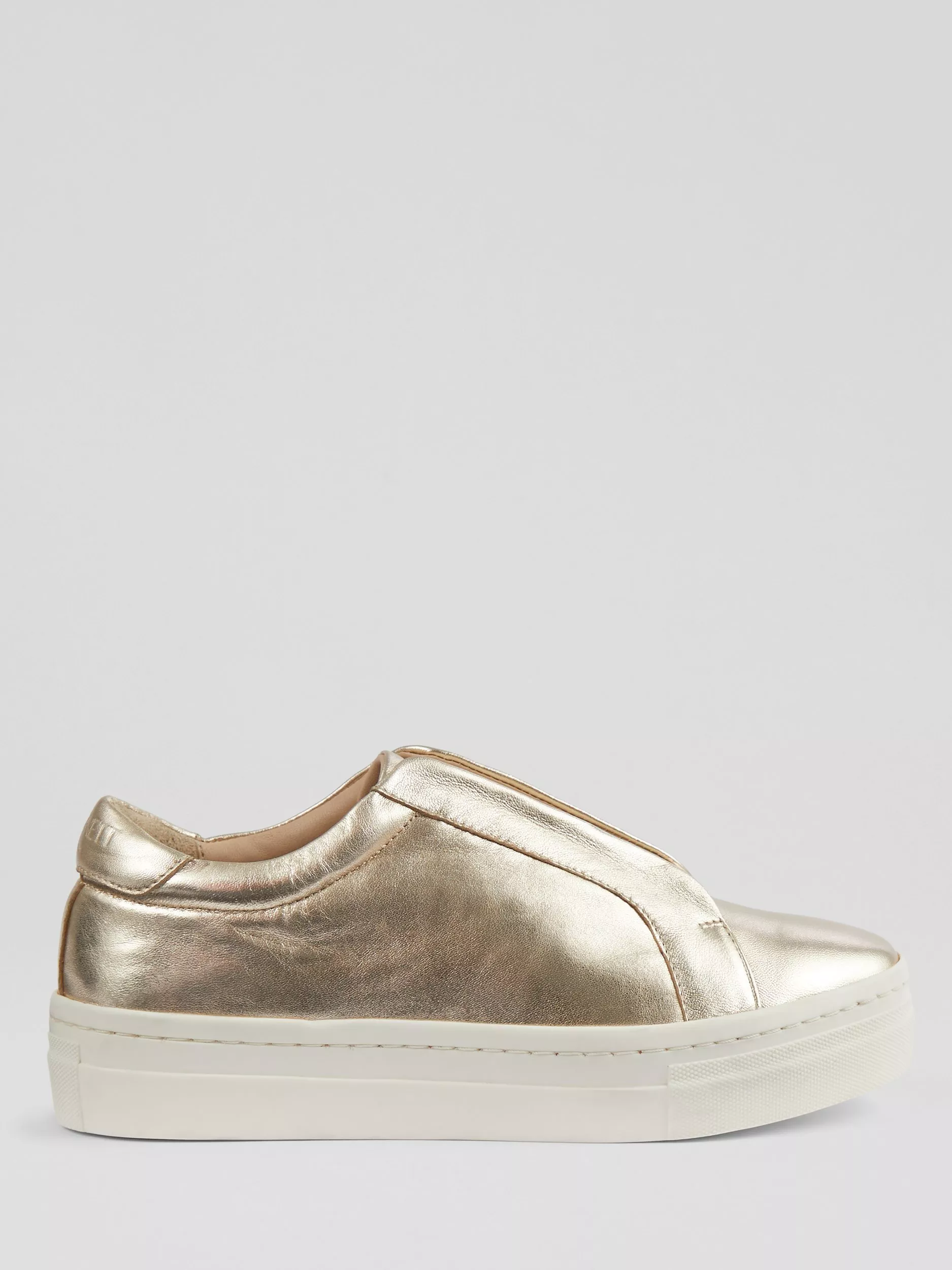 These Joy trainers, from L.K.Bennett are where luxury meets comfort. Crafted from metallic leather, this pull-on design features a sleek silhouette and round toe. Ideal for any wardrobe, pair them with tailored trousers for daytime shine or let them sparkle with an evening dress.
