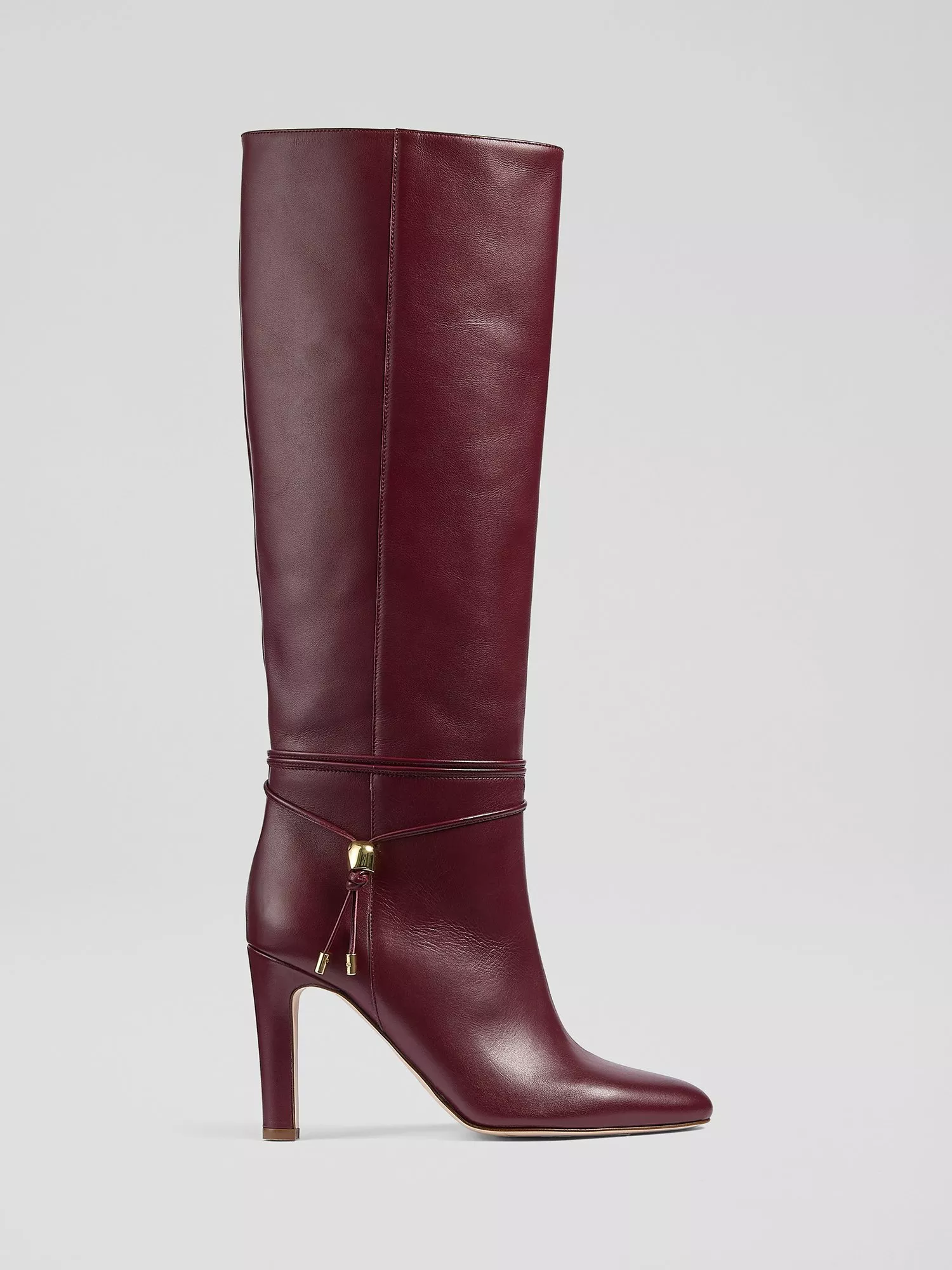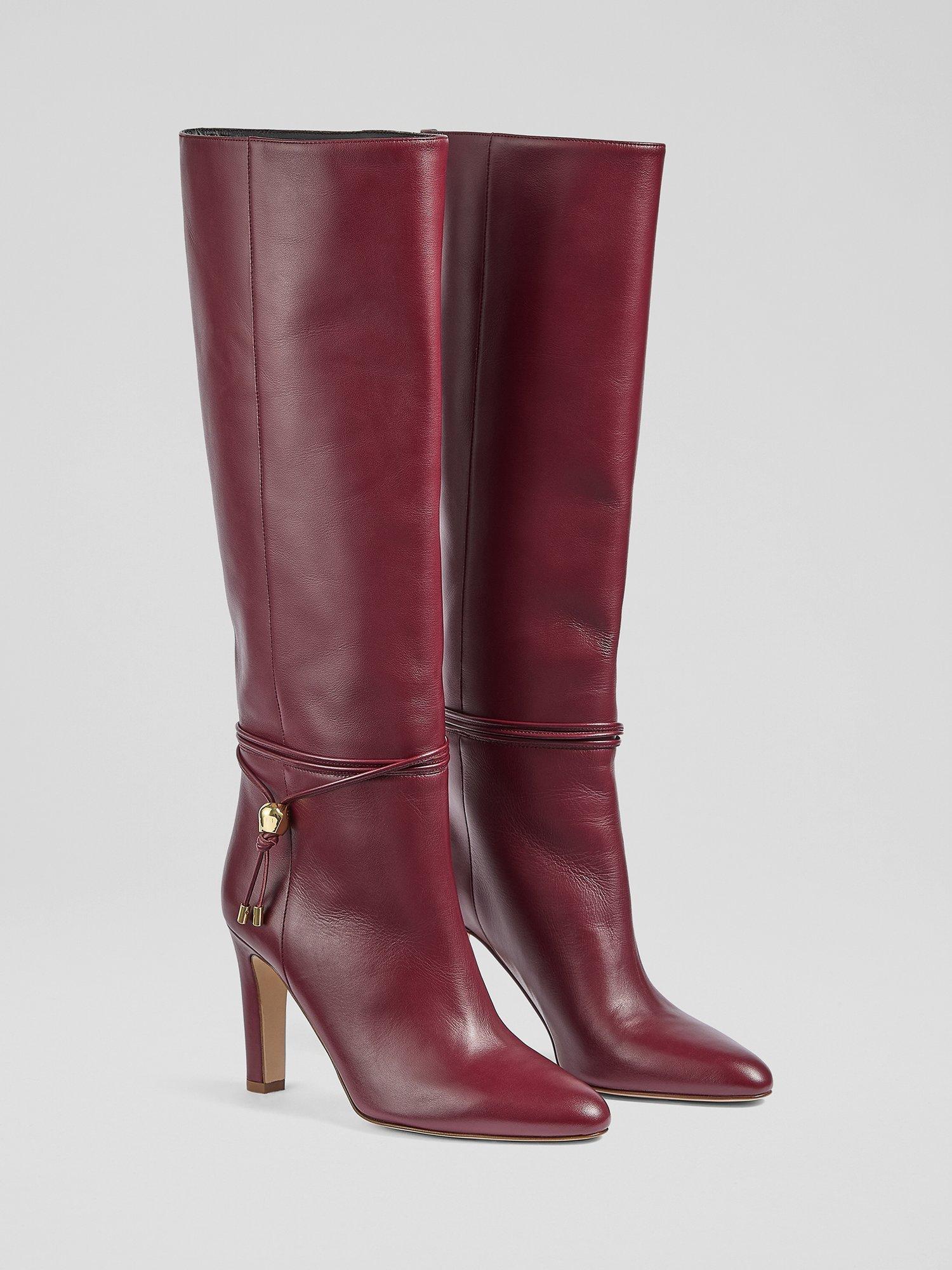 The Loretta knee boots showcase luxurious nappa leather in a rich burgundy tone that adds stylish depth to your fashion footwear collection. These Oloid toggle knee boots feature smooth leather lining for comfort, complemented by a practical sole. Their elegant silhouette makes them adaptable for smart casual occasions, while distinctive toggle details add understated interest.