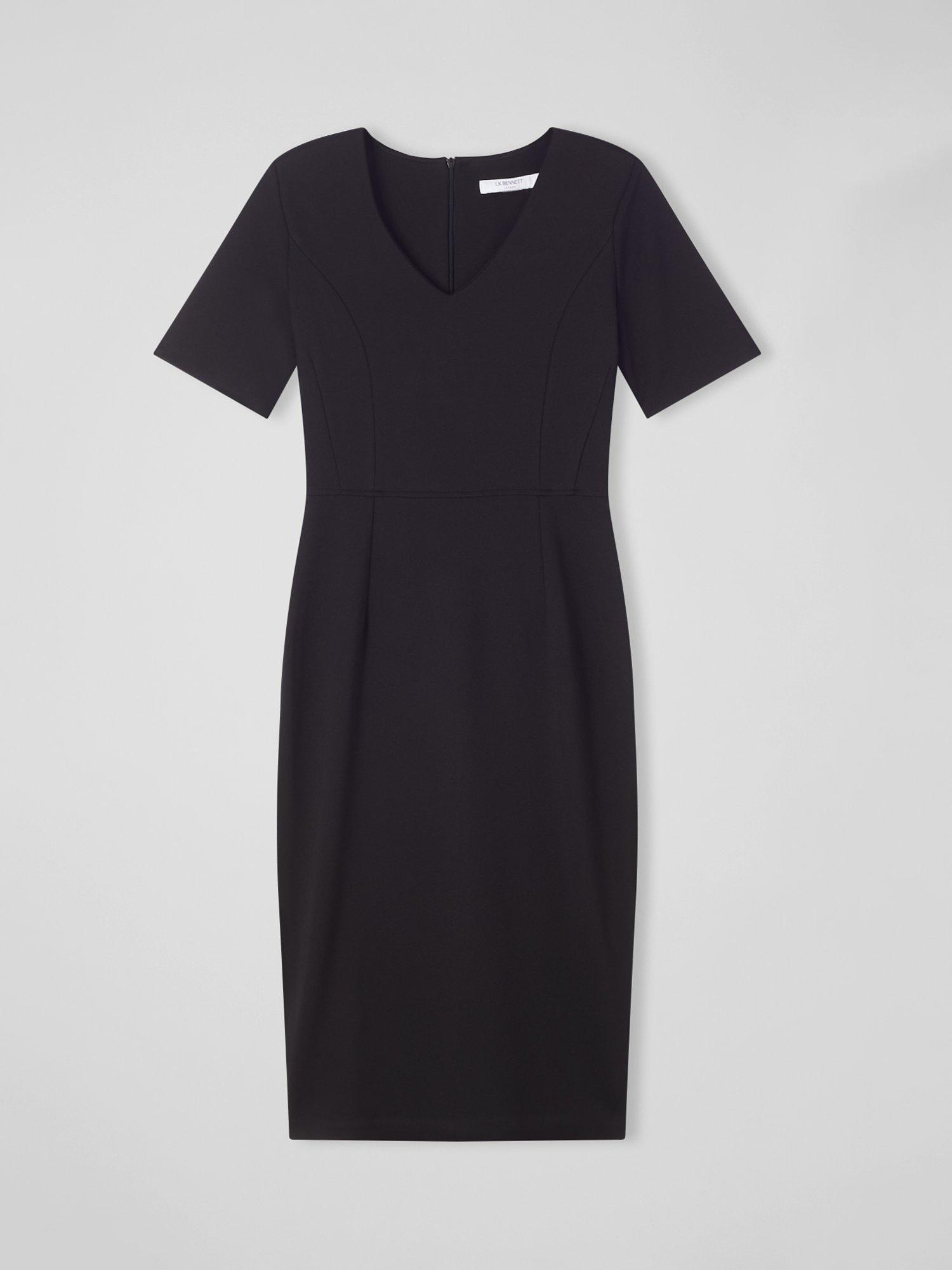 Cut to an iconic shift silhouette, this knee length dress from L.K.Bennett is made from a whisper-weight viscose blend. With a universally flattering v-neckline and short sleeves, this style allows you to showcase its versatility.