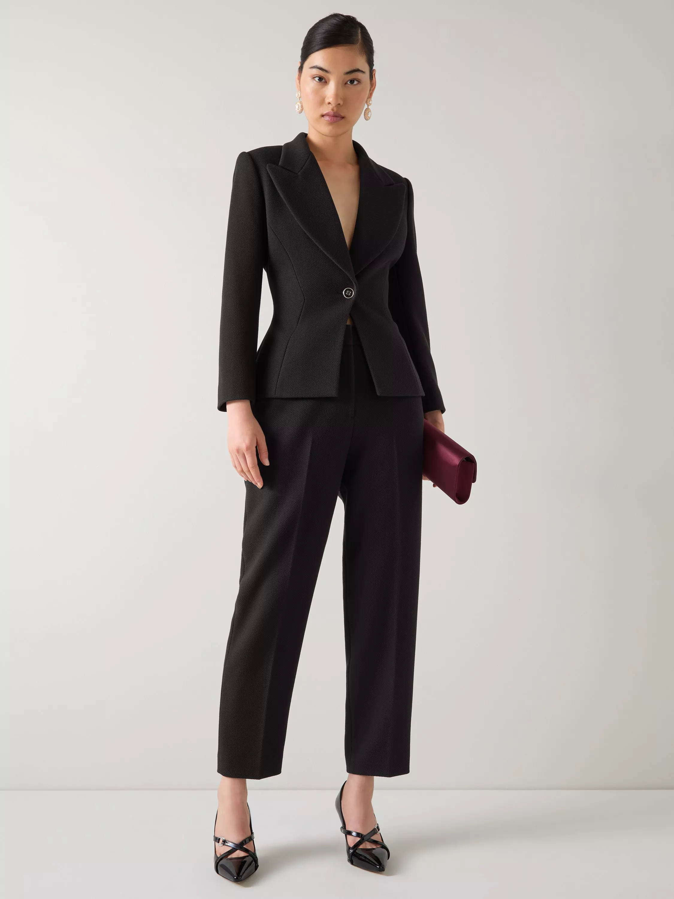 The Rosa jacket brings sculptured elegance to everyday workwear. Crafted from textured pique fabric, this peplum-style piece features a flattering V-neck and long sleeves for adaptable style. The distinctive LKB logo button adds a refined signature touch to this cropped silhouette. Layer over a silk blouse with tailored trousers for polished office attire, or pair with a sleek dress for elevated evening occasions. Rosa's structured form and texture make it the perfect finishing touch to any ensemble.