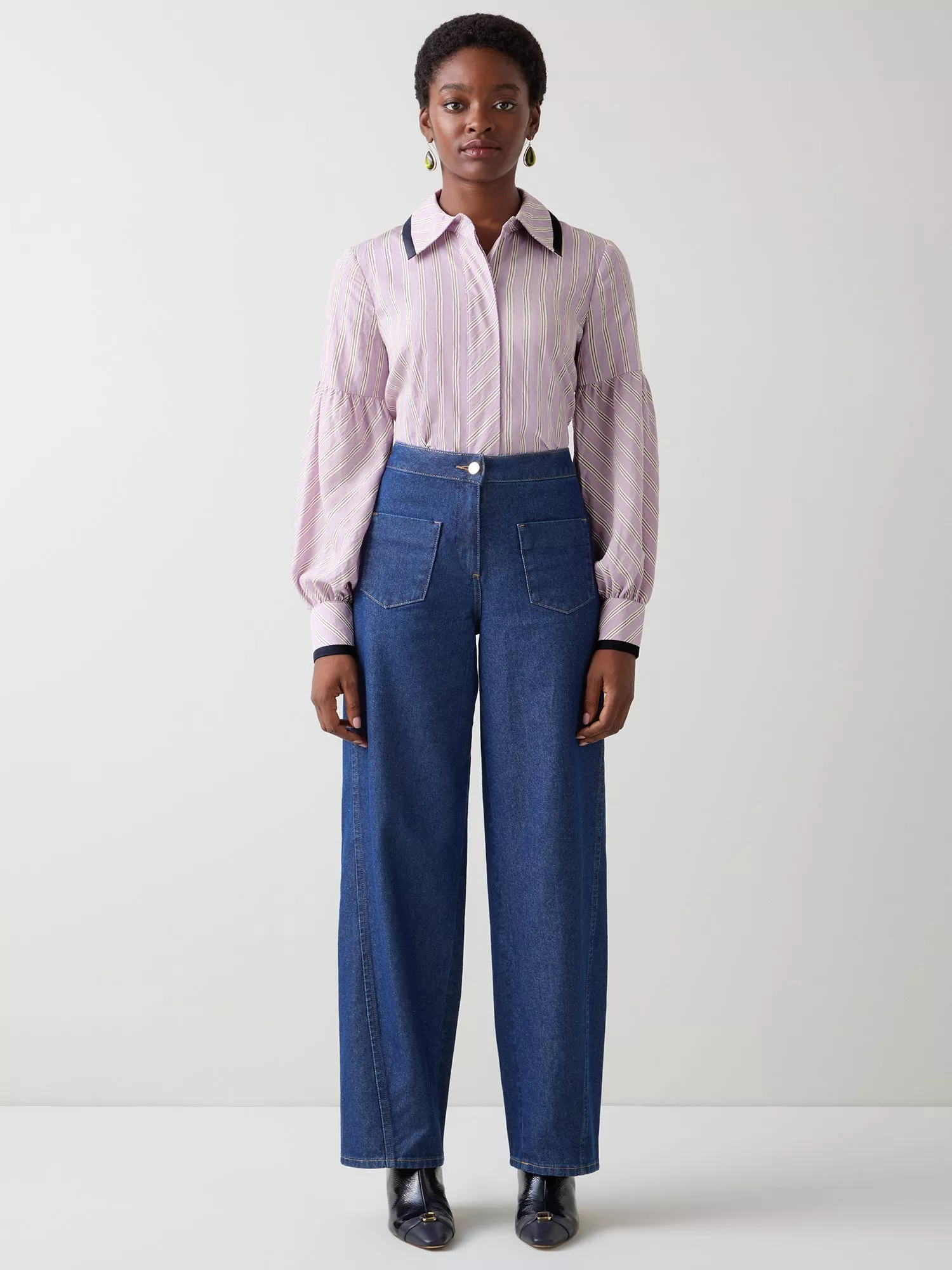 A colour contrast stripe shirt from L.K.Bennett, designed with a neat collared neck and long sleeves. With a button fastening for a polished look.