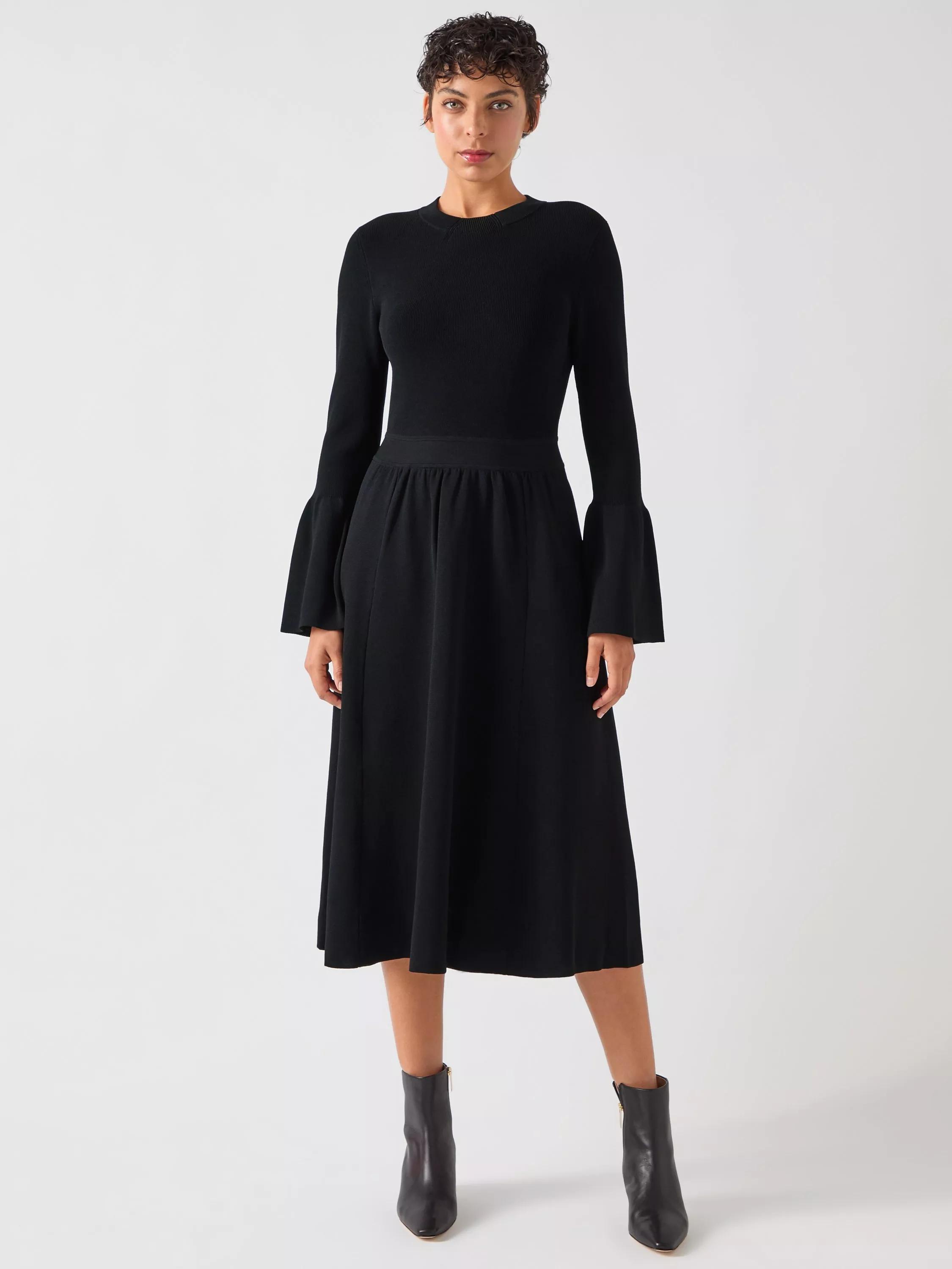 The Tabatha dress is a sculptured masterpiece in a Milano knit. This fit-and-flare silhouette, crafted from a viscose blend, features a crew neck and exaggerated full-length sleeves. Perfect for pairing with statement heels or delicate jewellery.