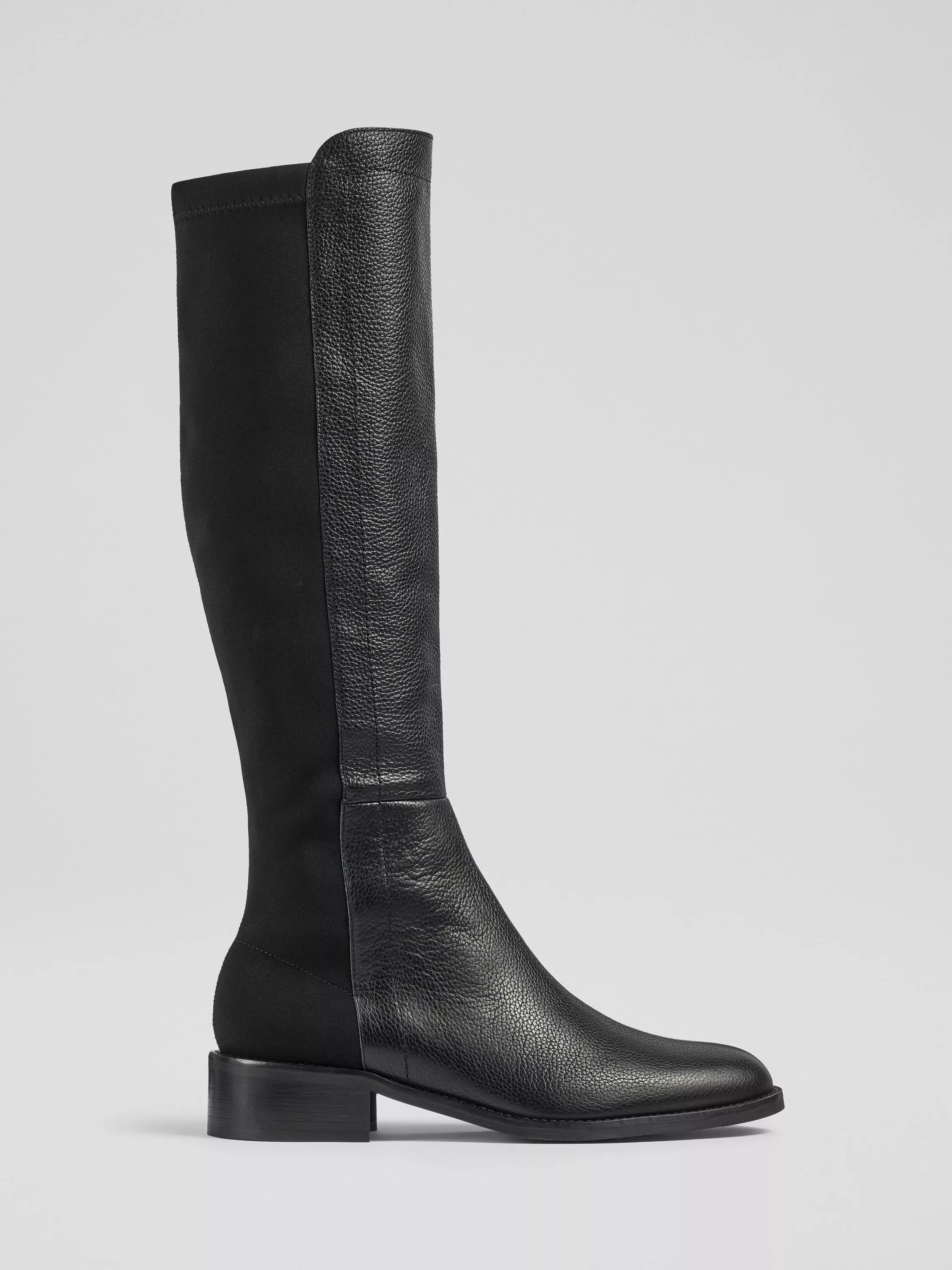 Sophistication with the Tallis half and half stretch knee boots. These exquisite leather boots are crafted in Italy, with a comfortable flat heel, making them ideal for smart-casual wear. Perfect with tailored trousers or your favourite autumn dress.