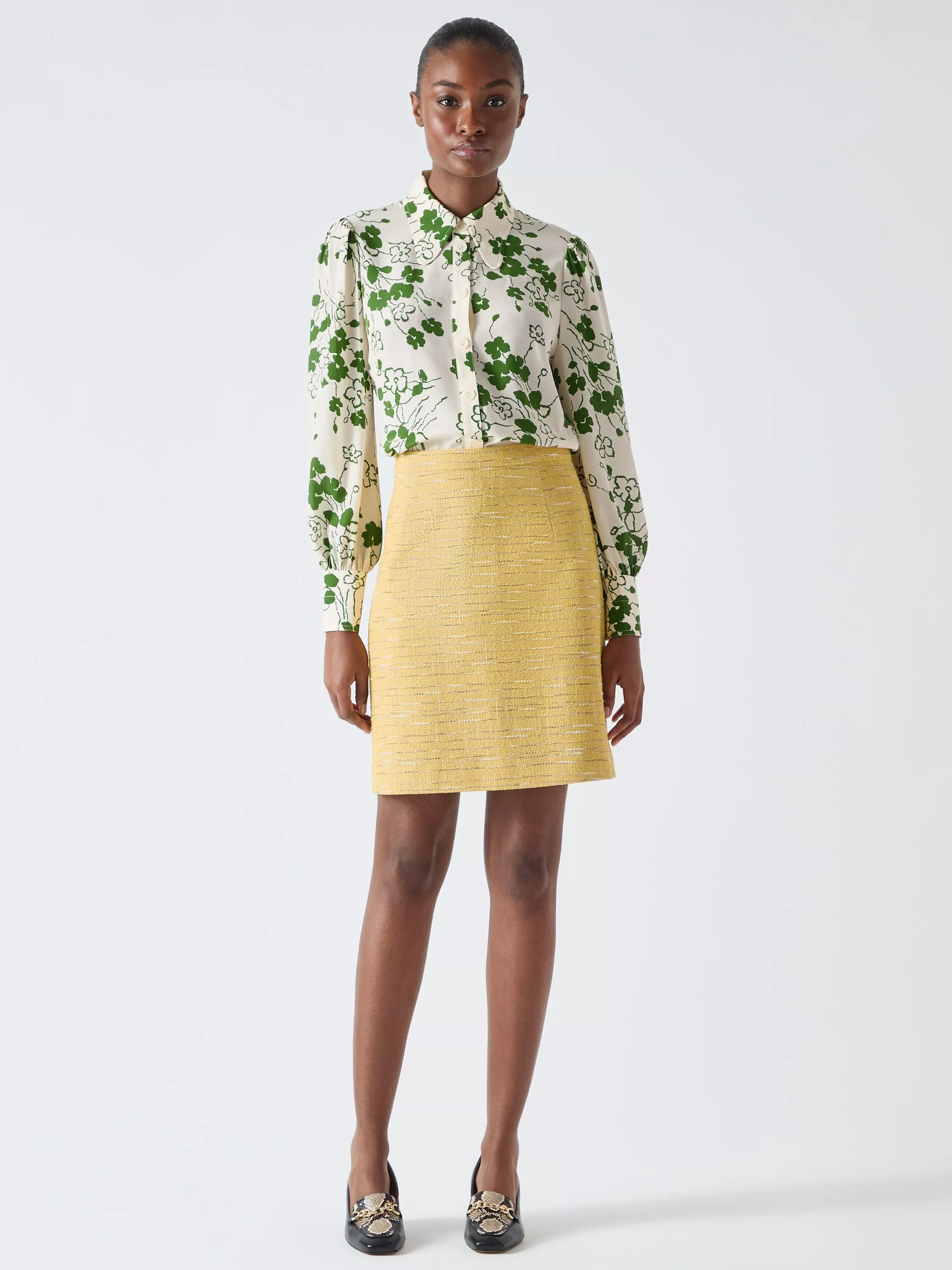 This charming mini skirt offers stylish elegance. The Varley design in vibrant Italian tweed features a concealed back zip and luxurious lining, crafted from a high-quality cotton blend. Ideal for brunches, casual office days, or date nights, pair it perfectly with a sleek blouse or a tailored jacket for an effortlessly smart casual look.