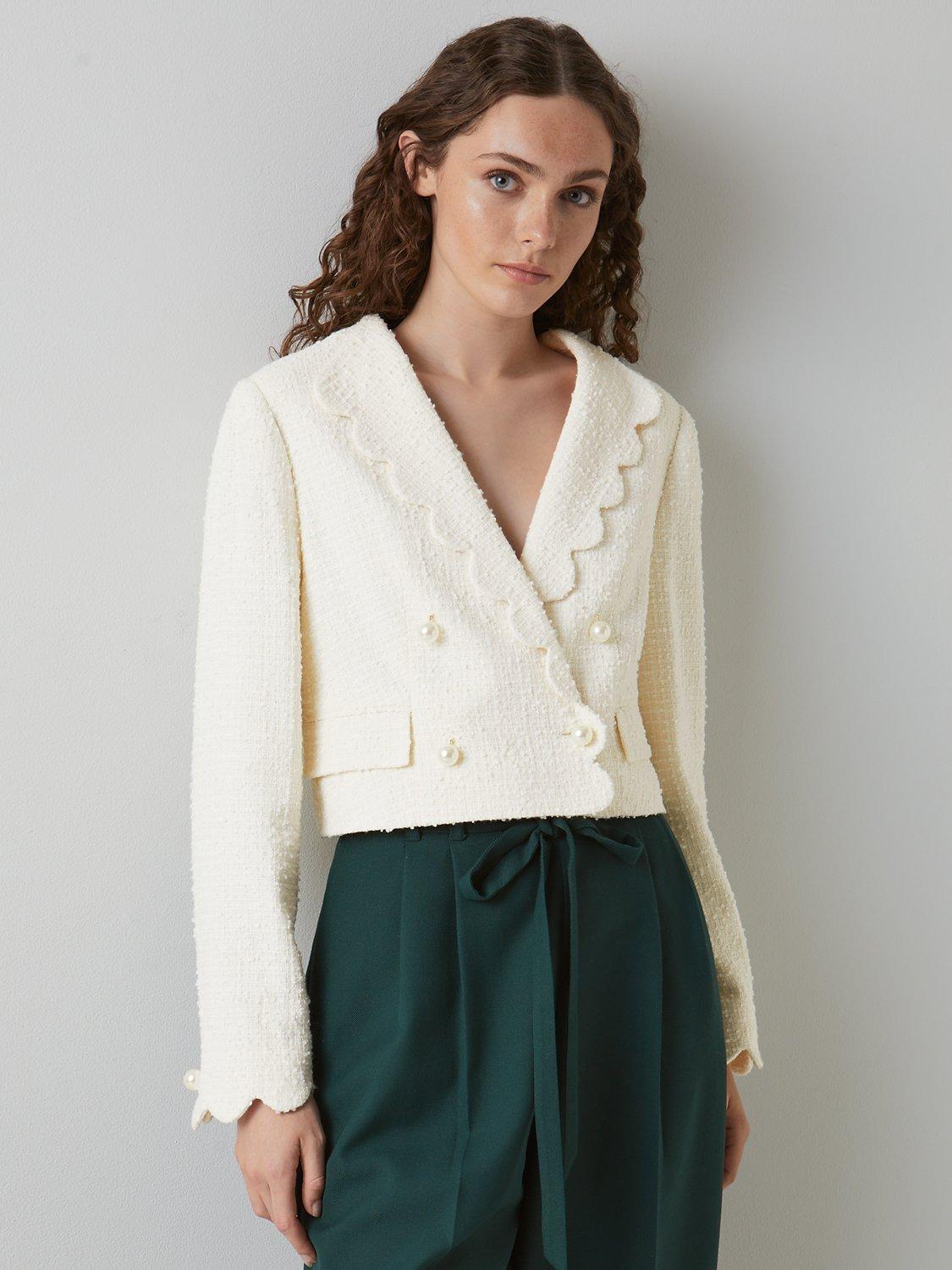 Neatly tailored with a scallop finish, this blazer from L.K.Bennett comes cropped at the hem.