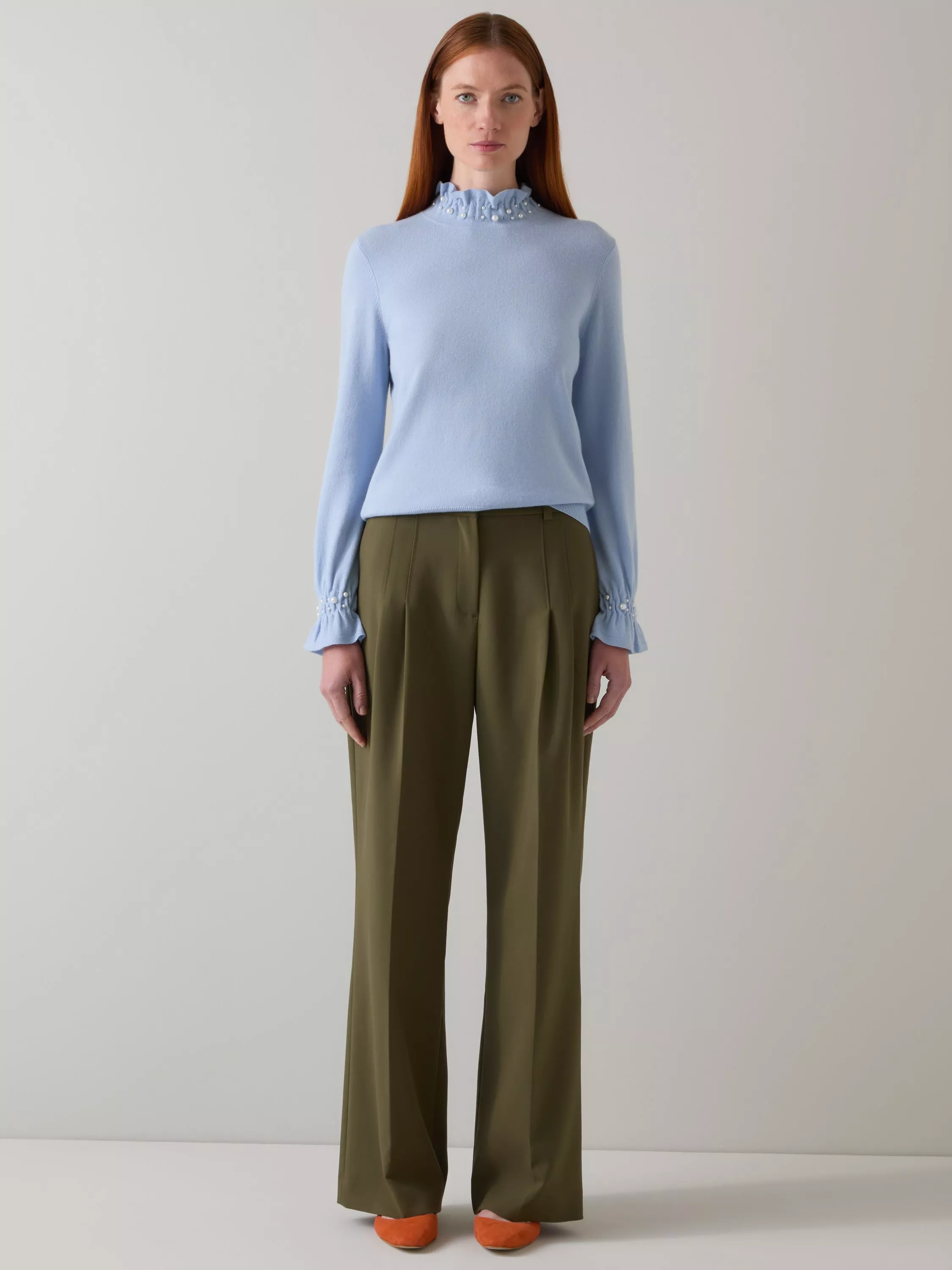 Elevated with ruffles, this long sleeve top from L.K.Bennett is a fine match for grey skies in a warming woollen blend.