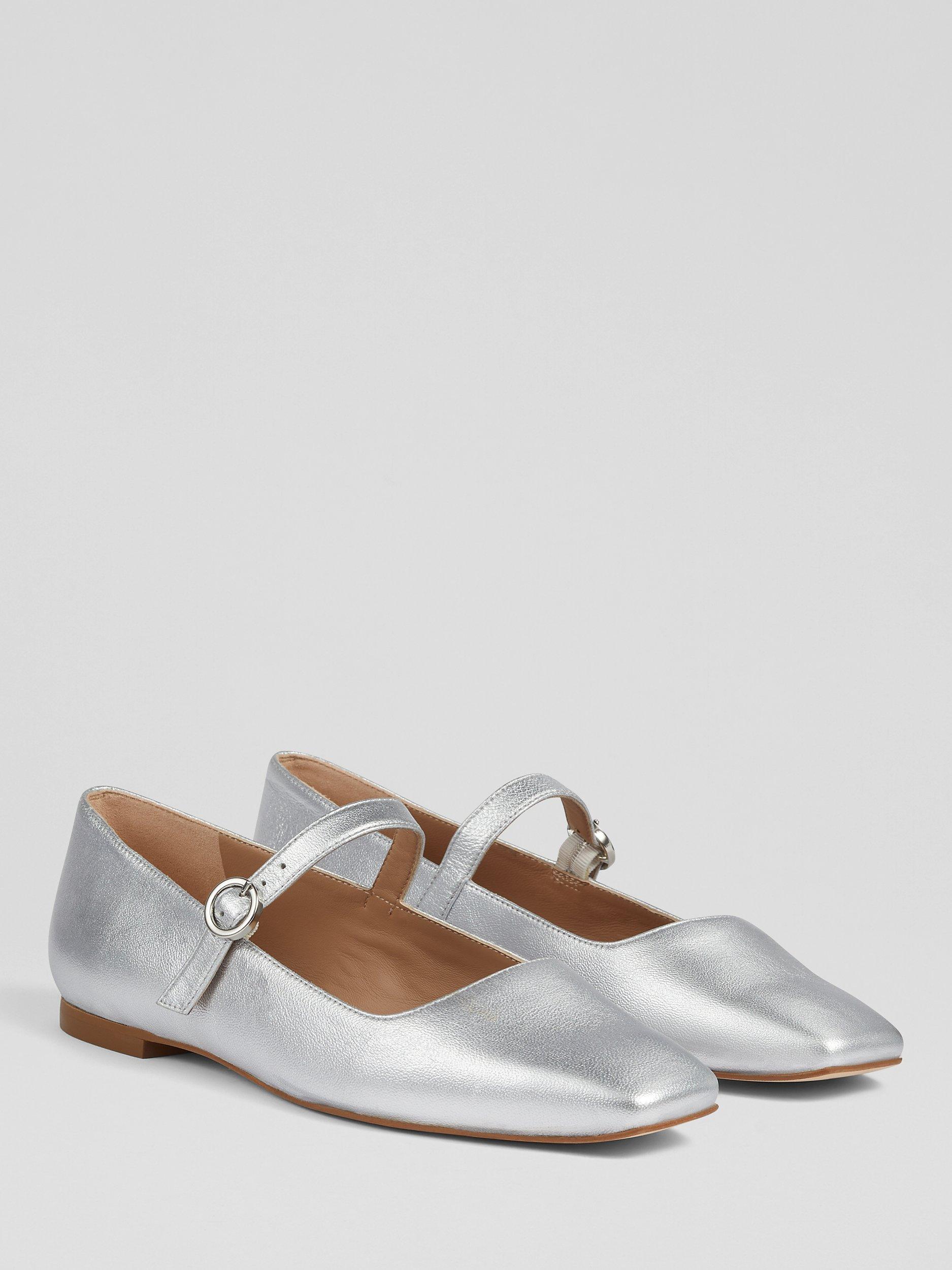 L.K.BennettWillow Flat Leather Mary Janes, Silver