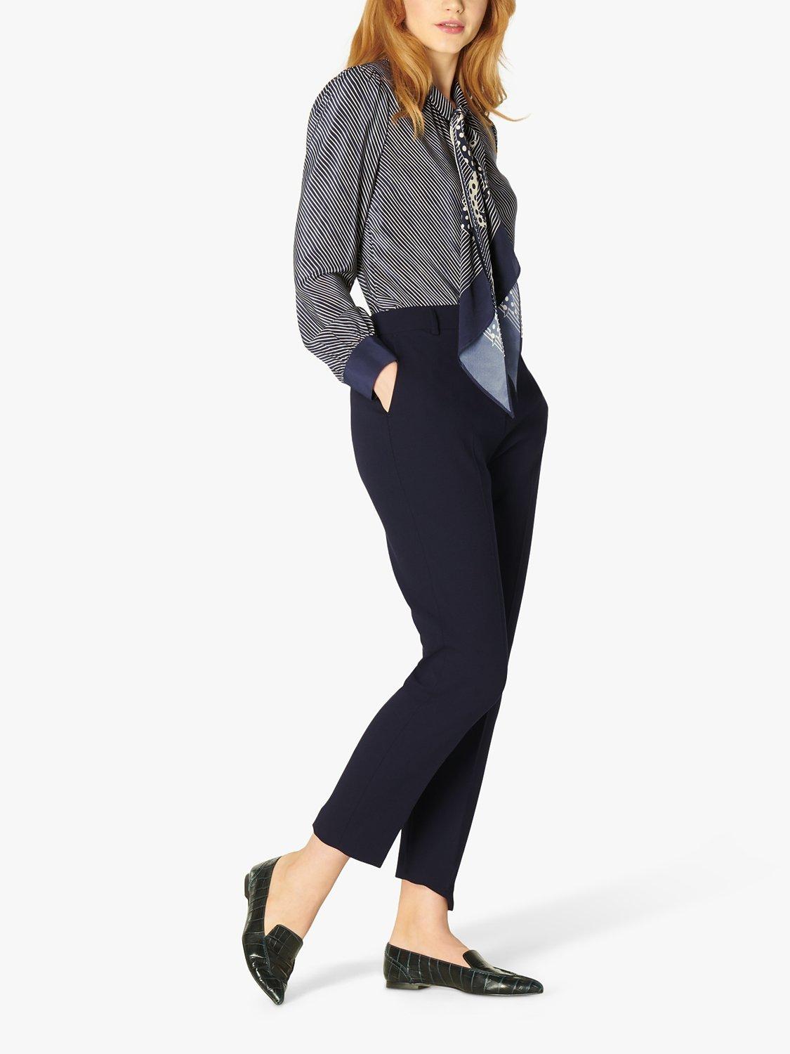 These Wren tailored trousers are a smart bit of tailoring that you'll want to wear again and again. Made from soft crepe with comfortable stretch, they sit neatly on the waist with belt loops, a slim-leg cut and are finished with centre creases. Keep things smart and elegant, styling with a silk blouse and courts.