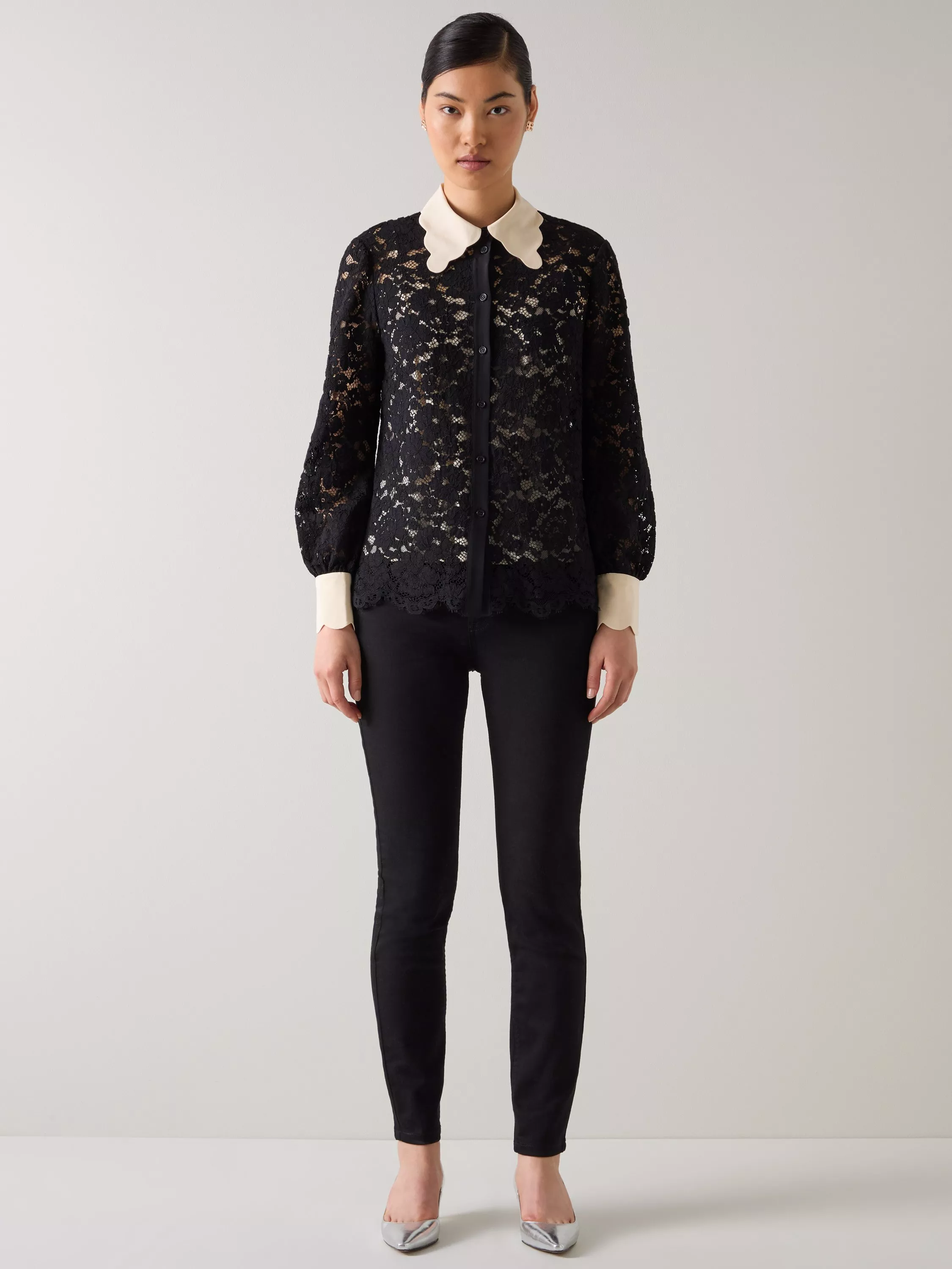 A blouse by L.K.Bennett, made from a comfortable cotton-rich fabric. With a collar neck and long sleeves, it comes in a floral lace design. Sleek style that carries you through the night.