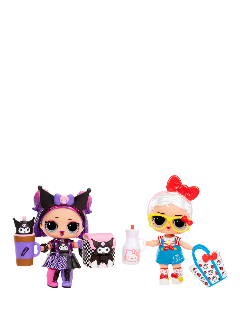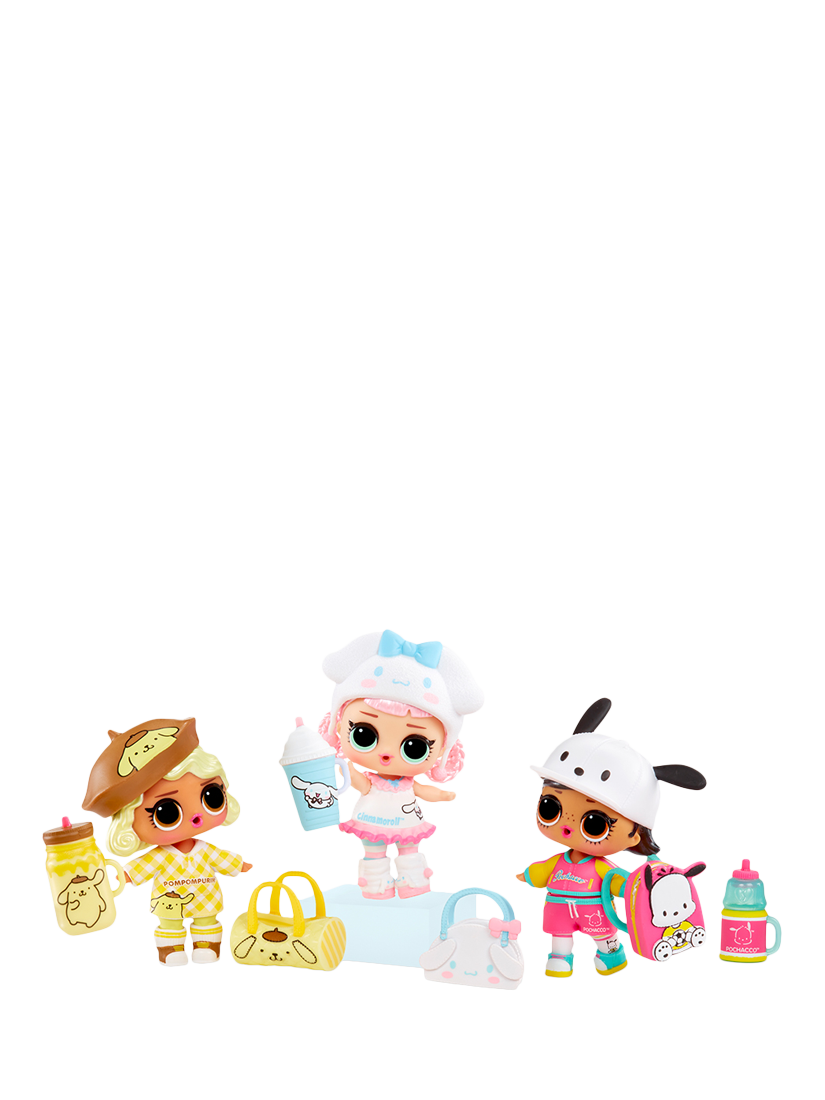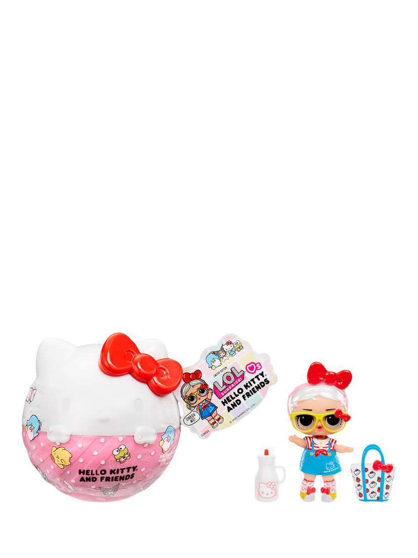 Make new friends with LOL's newest Tots inspired by Hello Kitty® and Friends characters. Each ball includes a collectable doll, outfit, headpiece, bottle, purse, shoes and sticker.