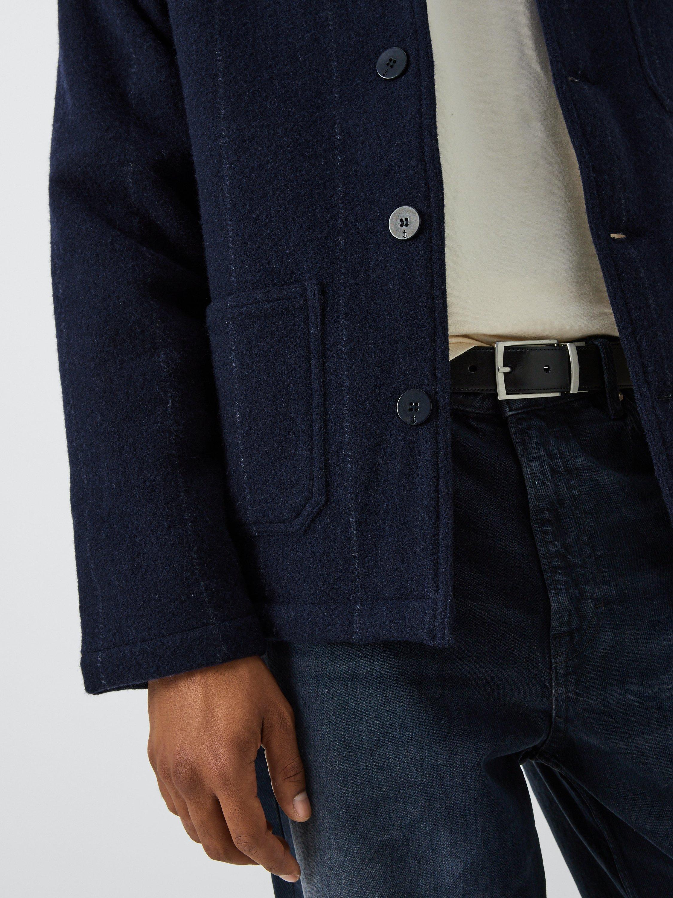Constructed from insulating wool, it is cut to a shorter length and fastens easily with buttons through the front.