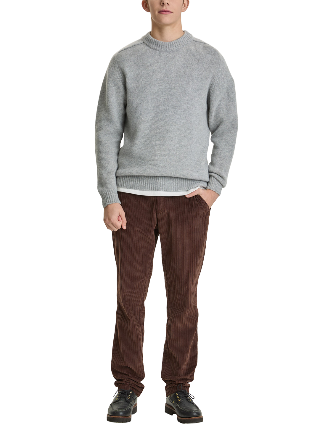 Feel confident in this fine merino wool jumper, built for smart layering and everyday comfort. The regular cut and plain crew neck provide a relaxed fit, perfect for any setting.