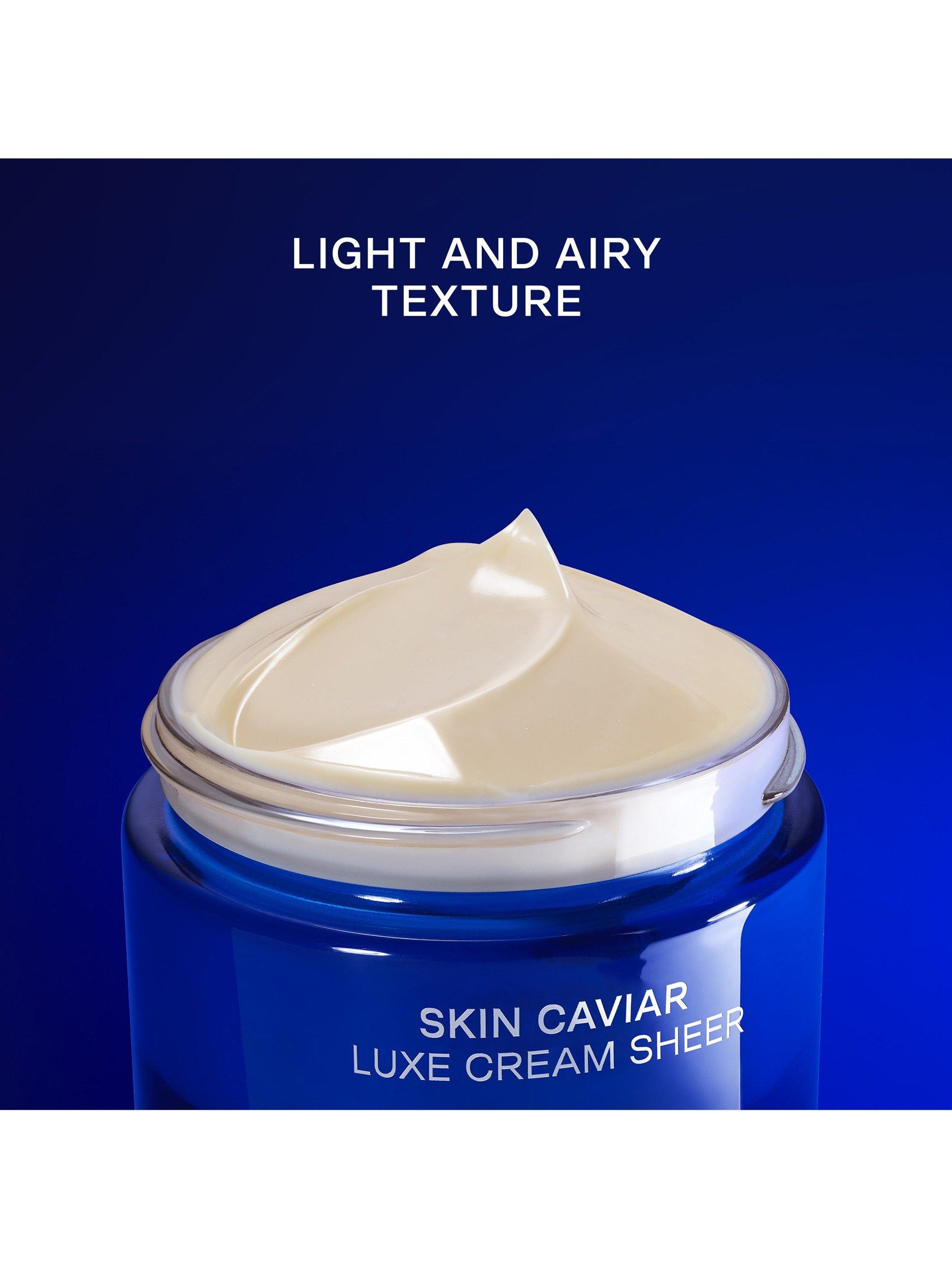 La Prairie Skin Caviar Luxe Cream Sheer combines the remastered science of Caviar Premier, Caviar Micro-Nutrients and its Exclusive Cellular Complex™ in a sheer formula to deliver phenomenal lifting, firming and nourishment and leave the skin feeling supple, taut and renewed.