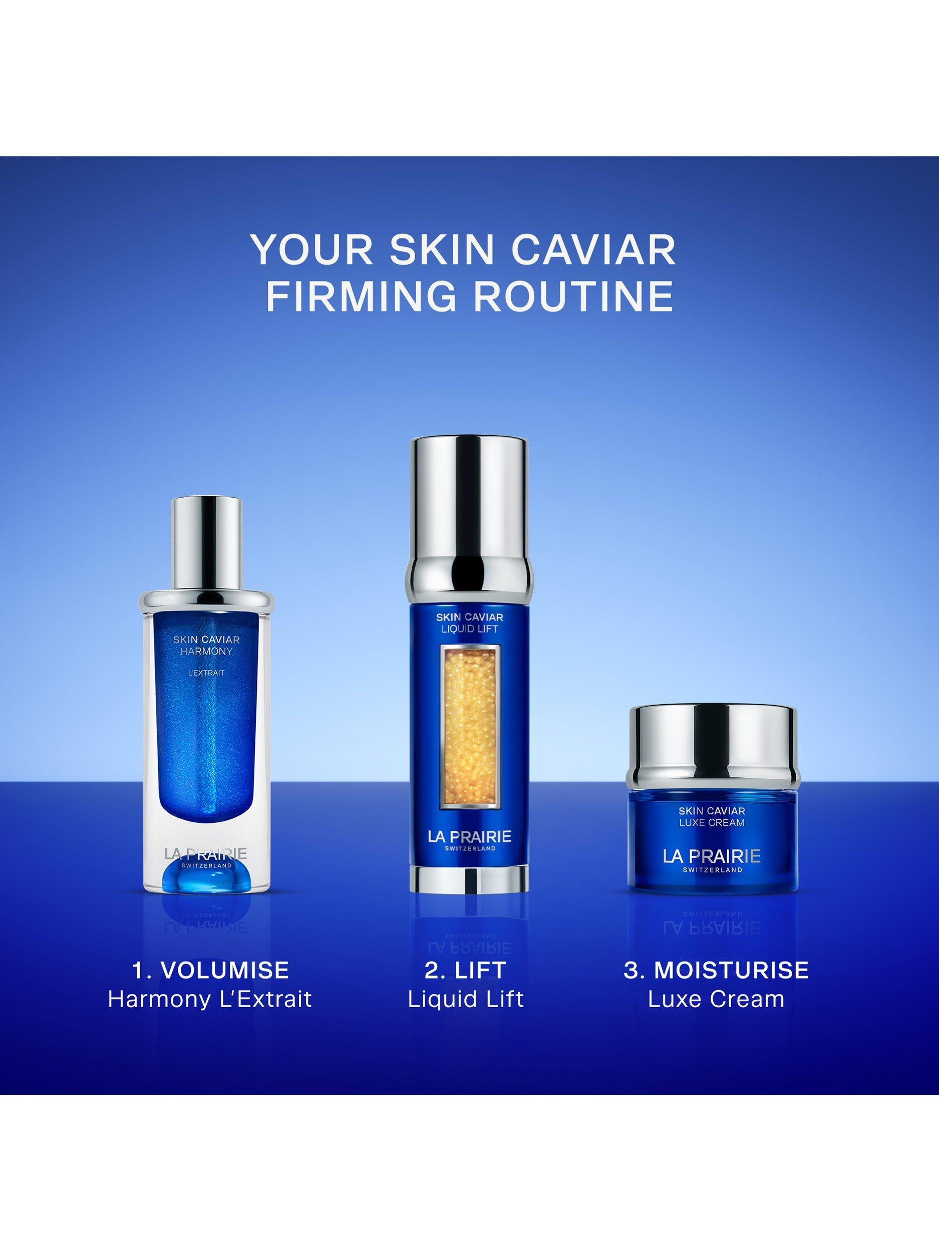 La Prairie Skin Caviar Luxe Cream combines the remastered science of Caviar Premier, Caviar Micro-Nutrients and its Exclusive Cellular Complex™ to deliver phenomenal lifting, firming and nourishment and leave the skin feeling supple, taut and renewed.