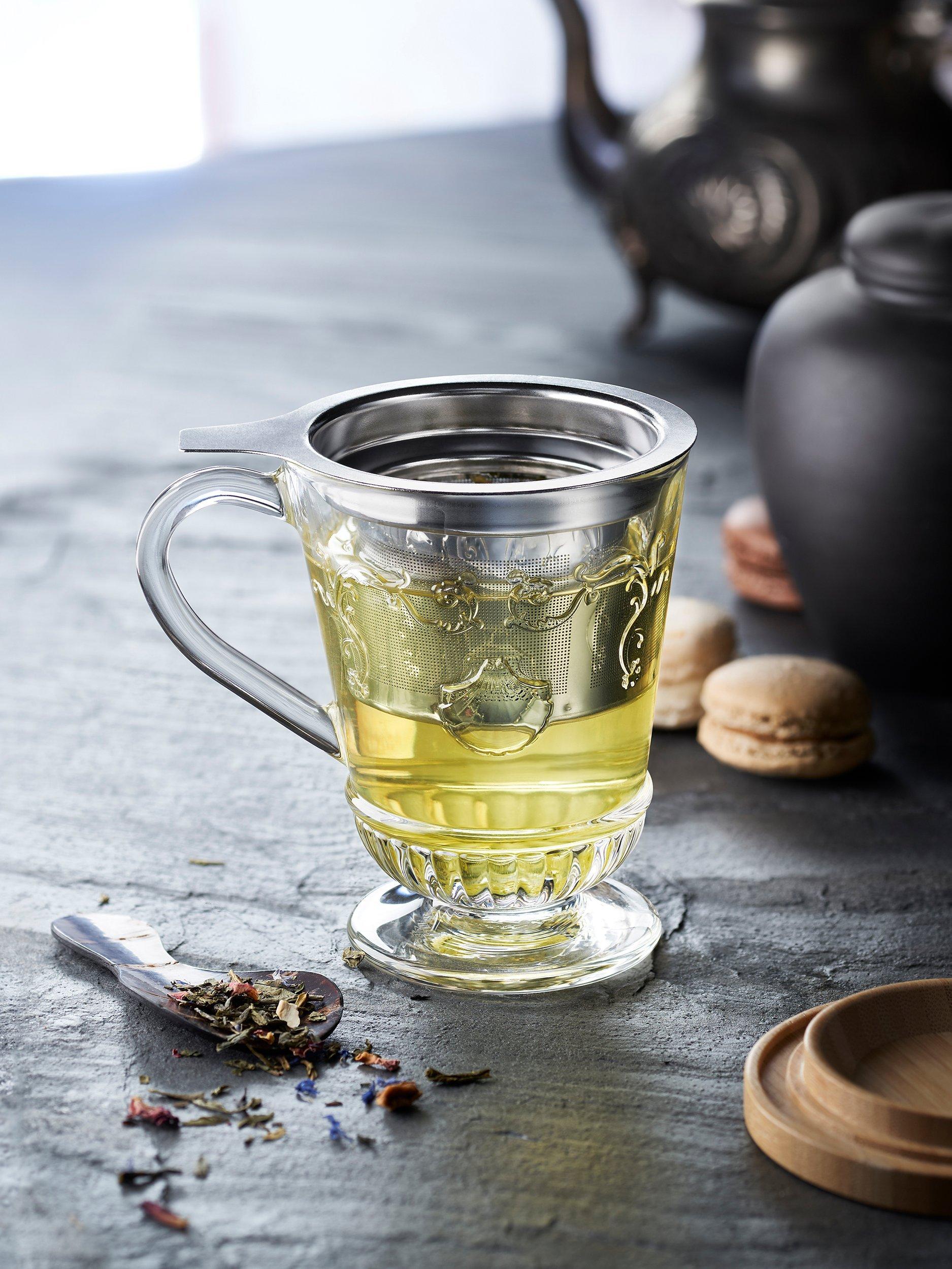 Infusion mugs are essential for those who enjoy loose-leaf tea and other natural infusions. Beautifully gift-boxed, this infuser mug from La Rochère is made of pressed glass in France, in the oldest glass factory in Europe. It's inspired by intricate patterns found in the Palace of Versailles.