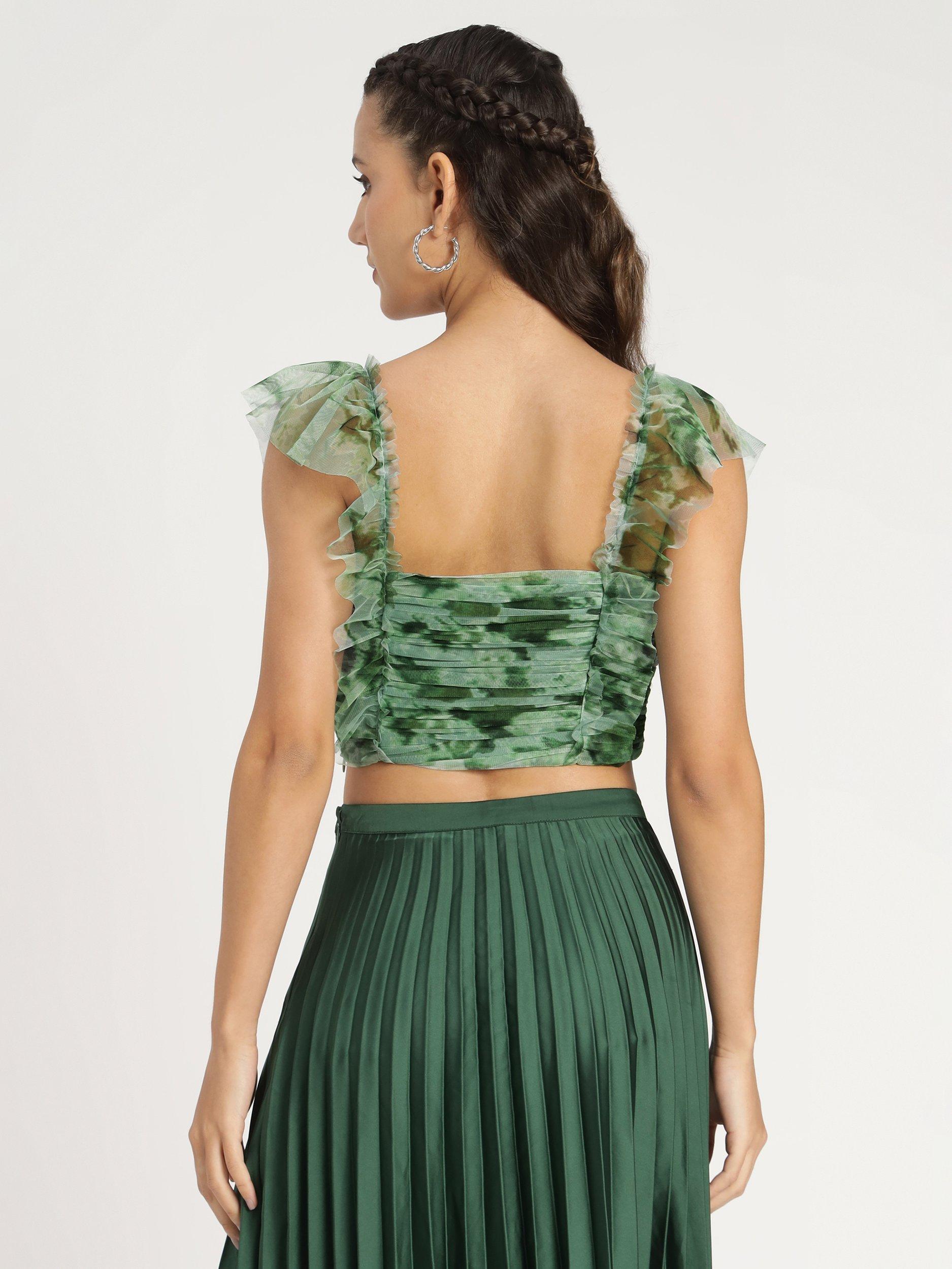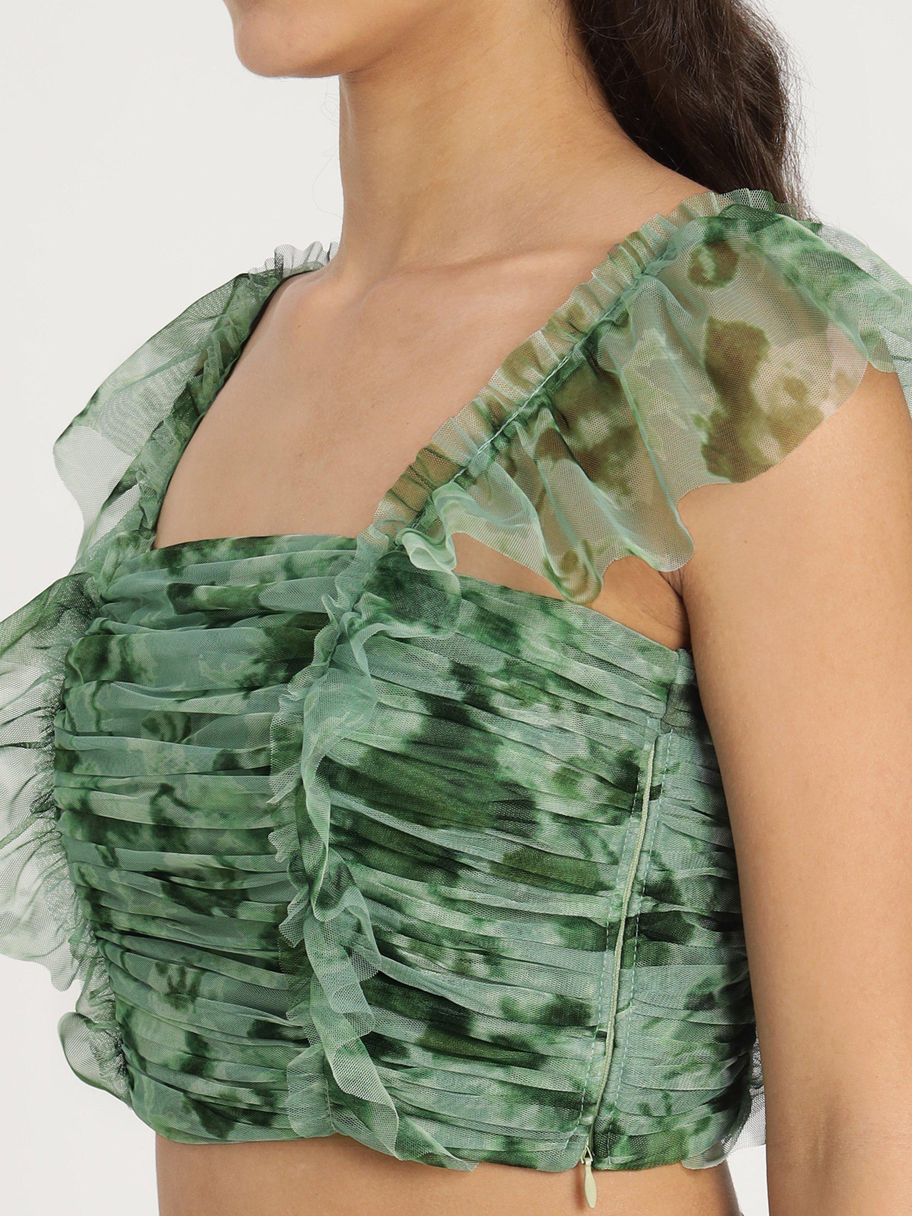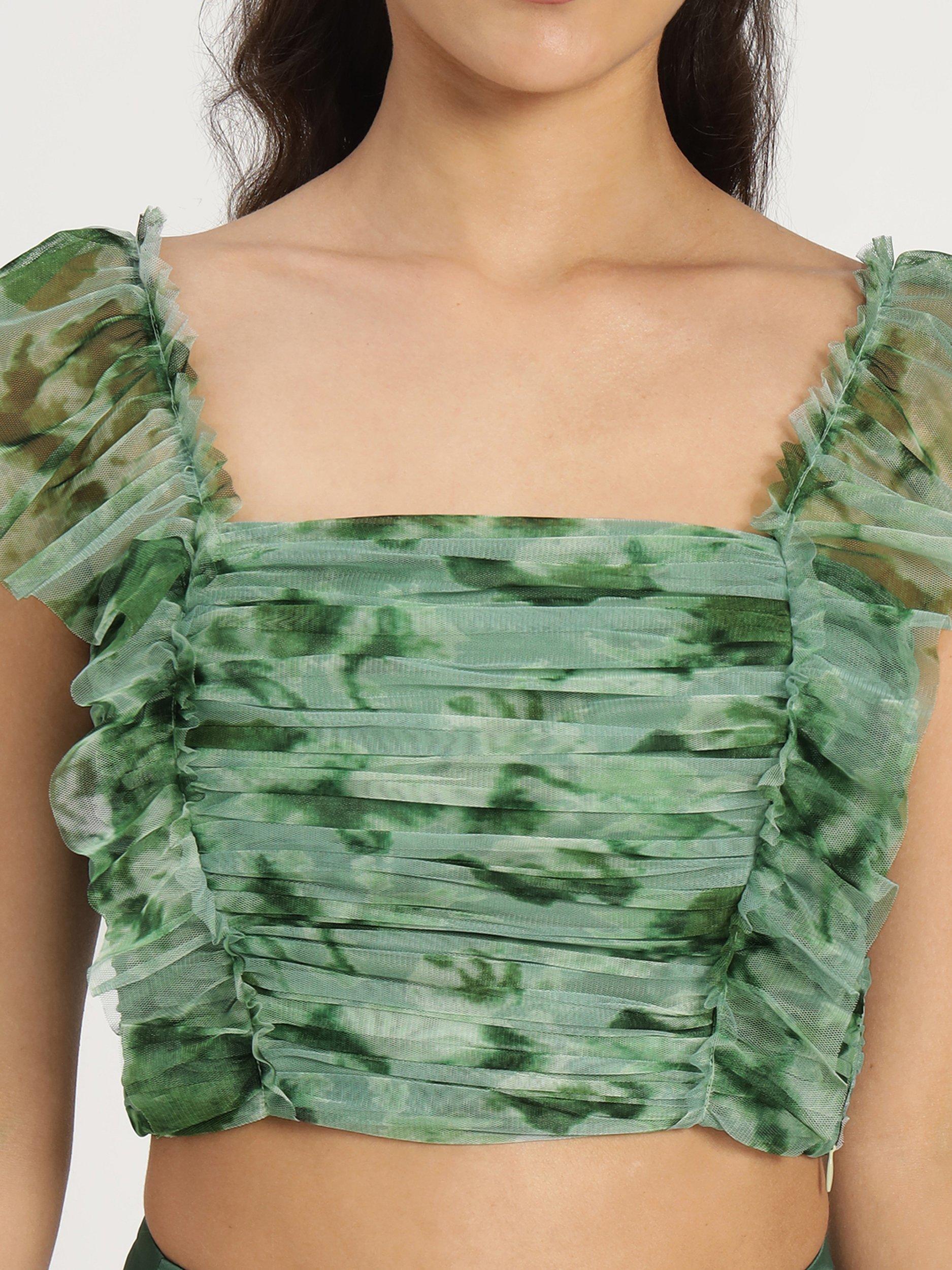Lace & BeadsNova Cropped Tulle Top, Green