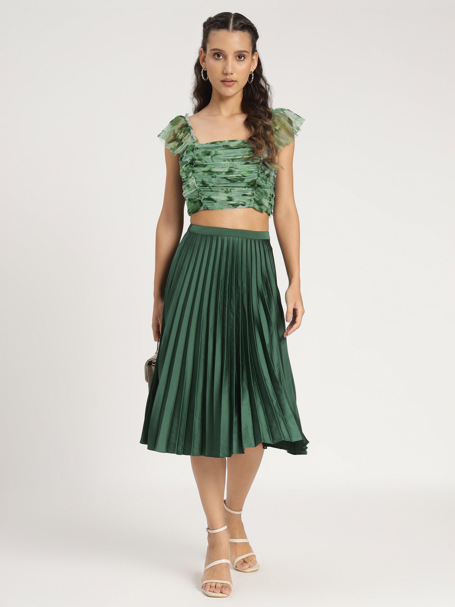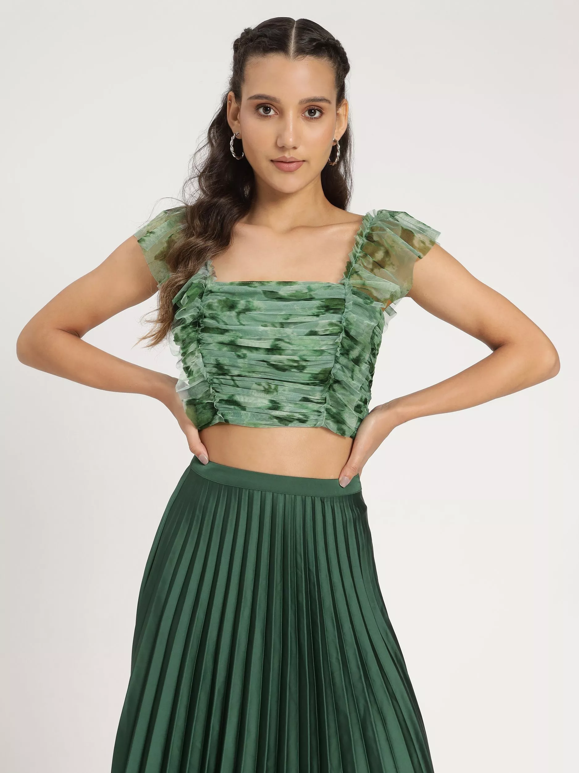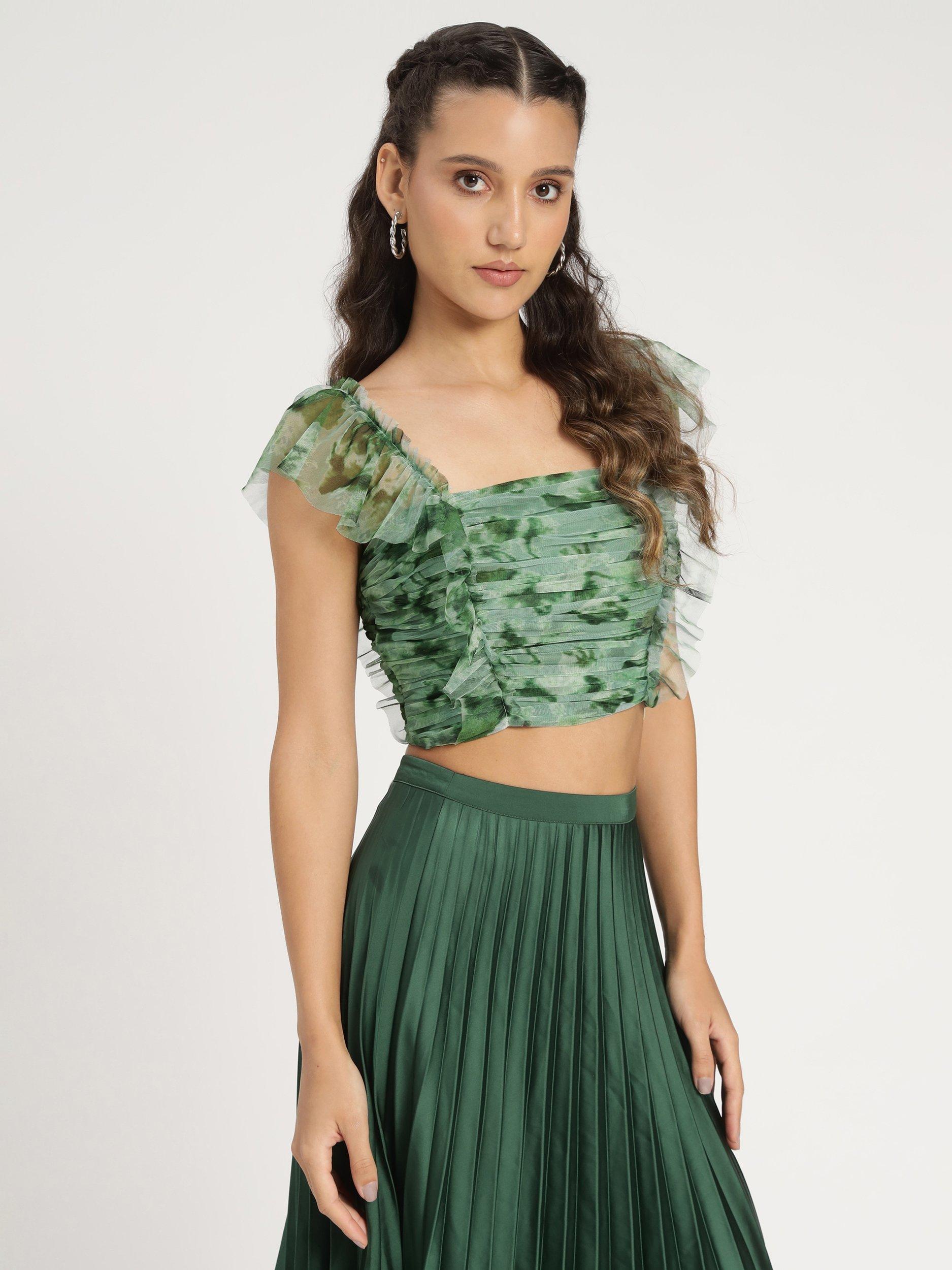 Lace & BeadsNova Cropped Tulle Top, Green