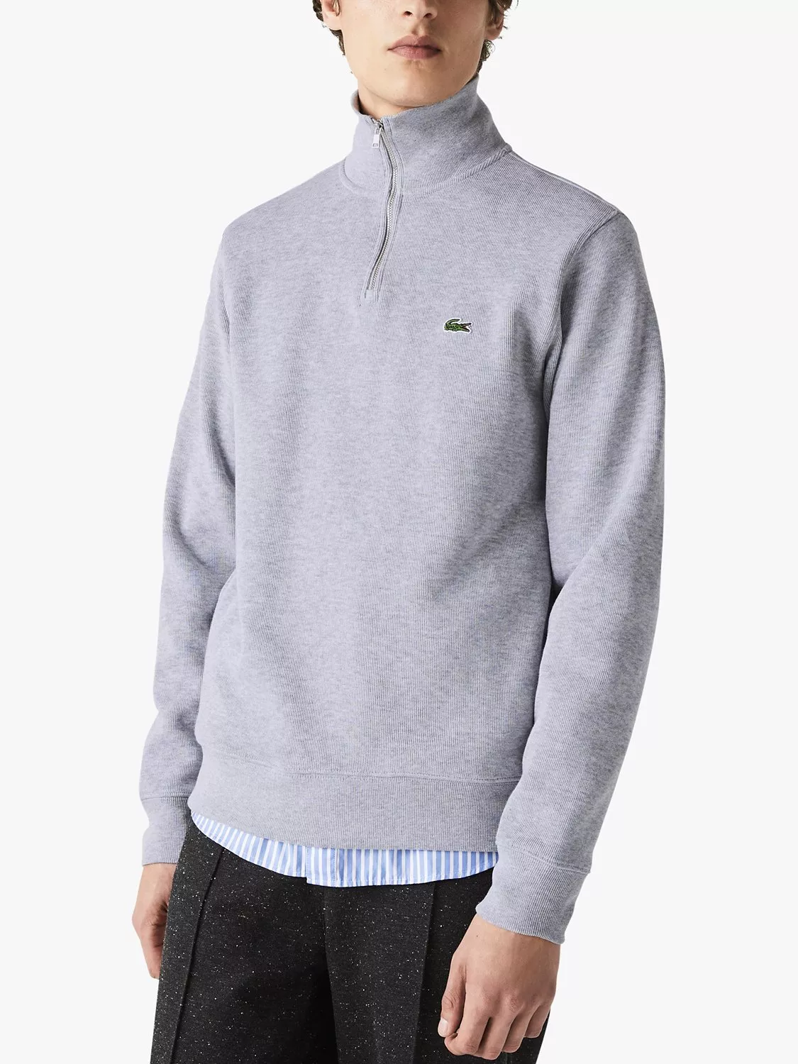 One for the casual edit, this jersey top from Lacoste is made from pure cotton for a super-soft and breathable handle. Framed by a classic 1/4 zip neckline and ribbed cuffed sleeves that help lock in warmth, this one's stamped with Lacoste's famous croc across the chest.