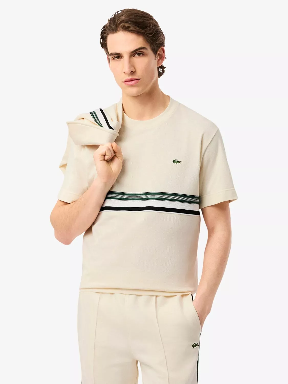 Knitting savoir faire meets sporty elements, presenting a strong Lacoste know-how. Classic fit, natural ease on the body made with petit piqué in organic cotton.