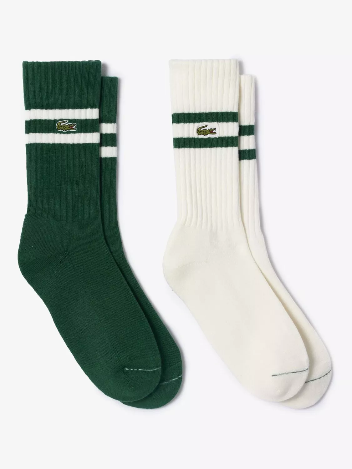 LacosteJacquard Stripe Crew Socks, Pack of 2, Green Mid