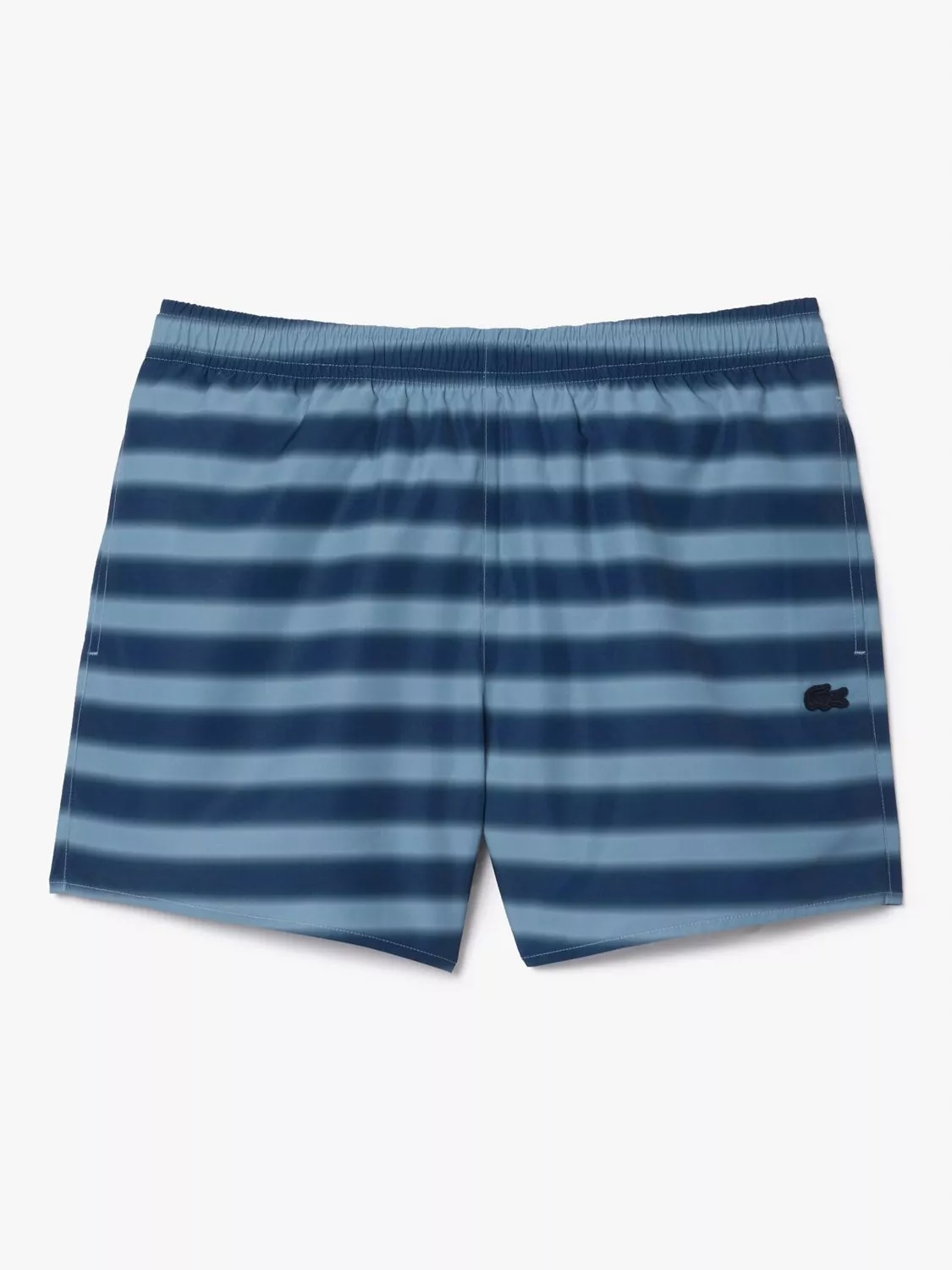 With a faded stripe print, this pair of swim trunks by Lacoste are designed with a full elasticated waistband, short length (mid-thigh when worn) and have a sustainable approach thanks to their fabric made of 100% recycled polyester.