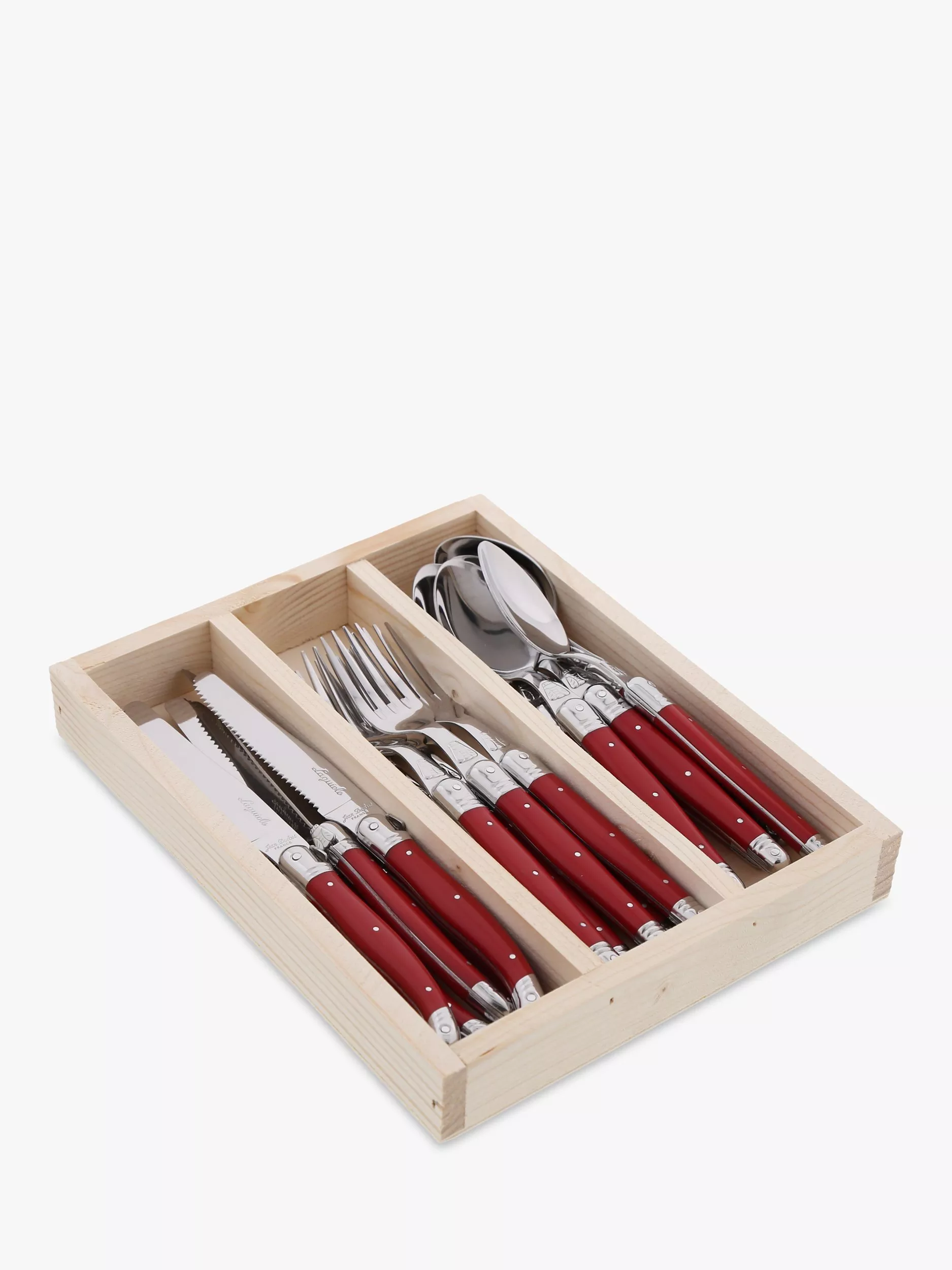 18-piece cutlery set, presented in a natural wood tray to keep the set organised. Made of durable stainless steel with ABS handles for comfortable holding, the cutlery is dishwasher safe for easy and hygienic cleaning.