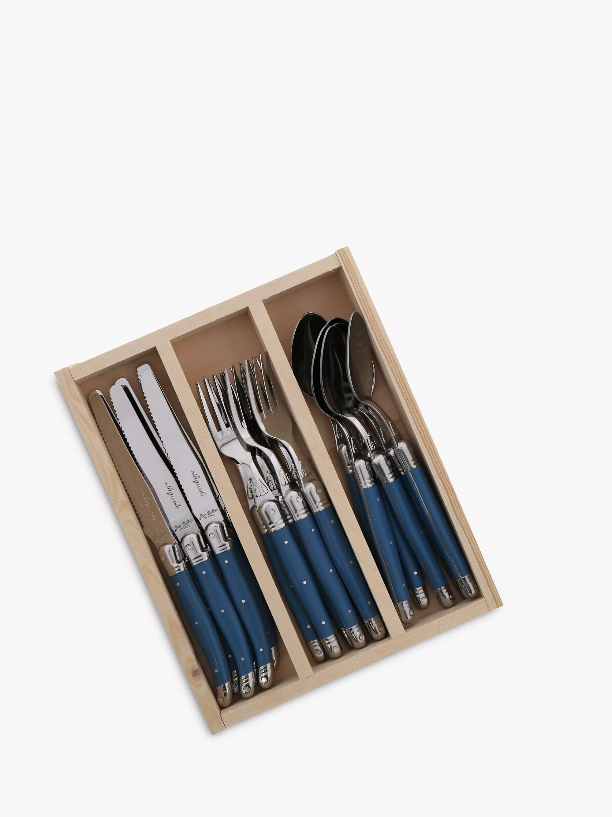 For four generations, the family-run company Jean Dubost, founded in 1920, has manufactured renowned Laguiole knives and flatware pieces near Thiers, the capital of French cutlery. The Laguiole knife has been crafted in the area for over 200 years. The cutlery is stamped with a bee symbol, an emblem of the region and a sign of authenticity.