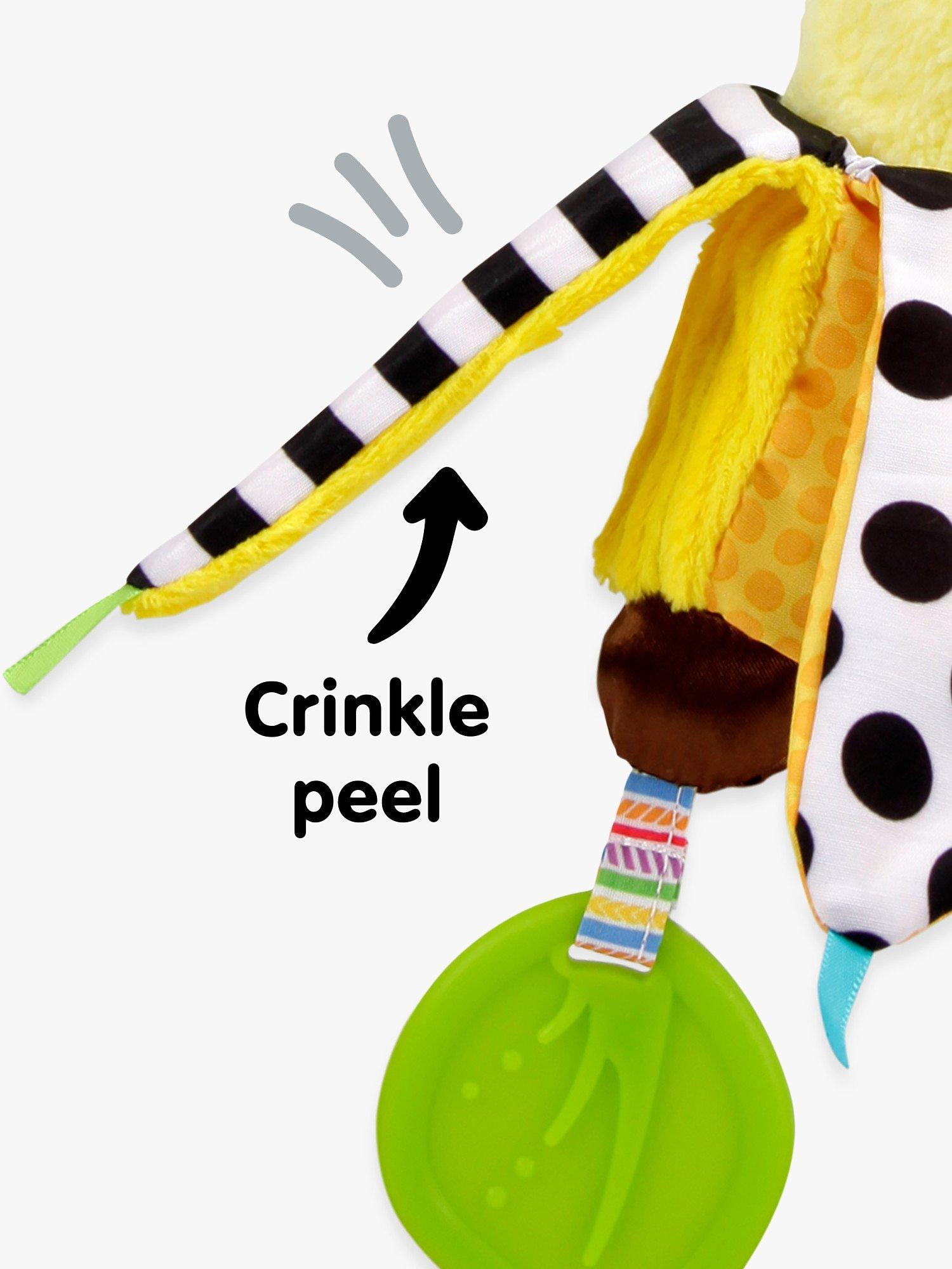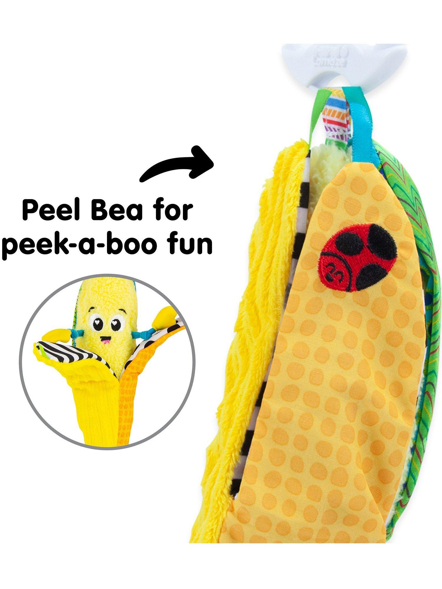 Babies learn about healthy snacks while grabbing and peeling this soft friend. Bea is full of textures to explore. With lots of hidden surprises, baby will learn about things appearing and disappearing each time you pull her peel.