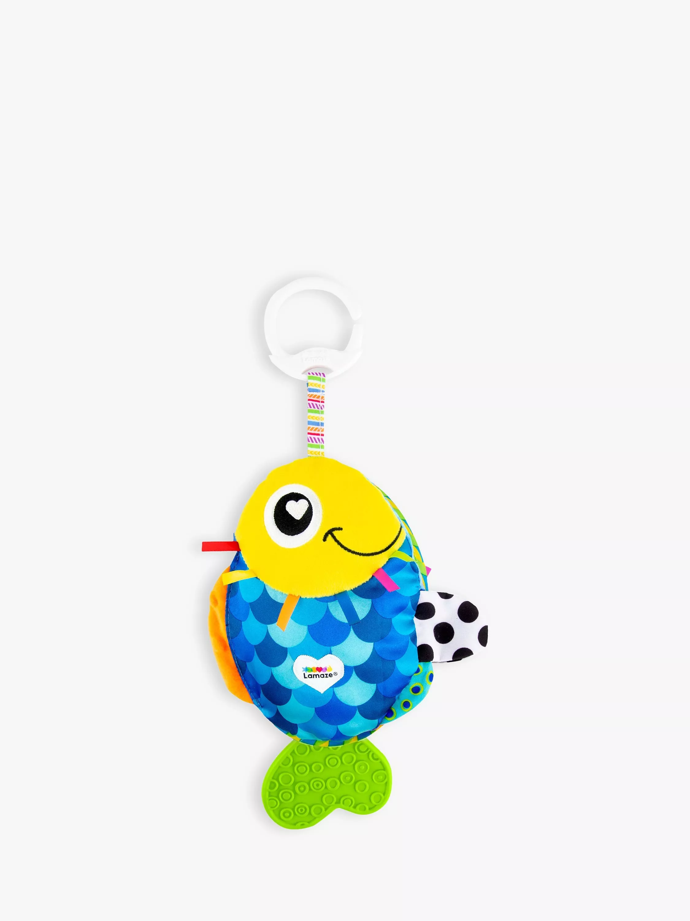 Keeping little ones entertained when on the go, this Fish activity toy from Lamaze is made with contrasting colours and textures to stimulate baby's senses. With a teething tab to soothe sore gums, this little fish is sure to be a favourite, clipping onto pushchairs, playpens and bags so that it is never far away.