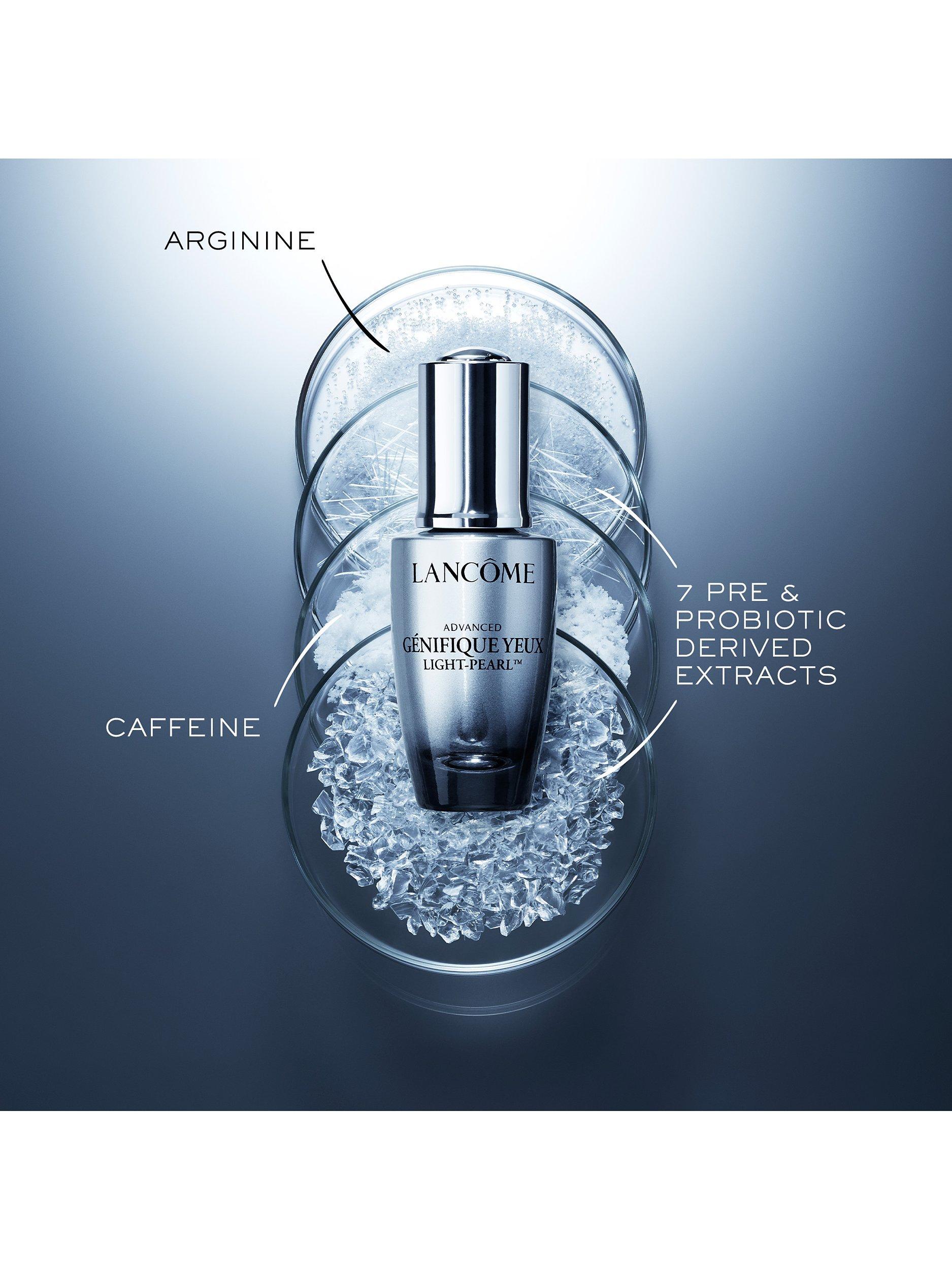 The delicate eye area faces pressure and over time, the eye area may become fragile, and signs of ageing may appear. Advanced Genifique Light Pearl eye and lash serum, inspired by microbiome science, now formulated with caffeine and arginine is your new morning wake up call. Experience the 360° efficacy of the eye contour serum, instantly cooling and depuffing for wide-awake eyes. It improves smoothness, and the appearance of eye bags and reduces lines to reveal eyes that feel re-energised, and look smoother and brighter.