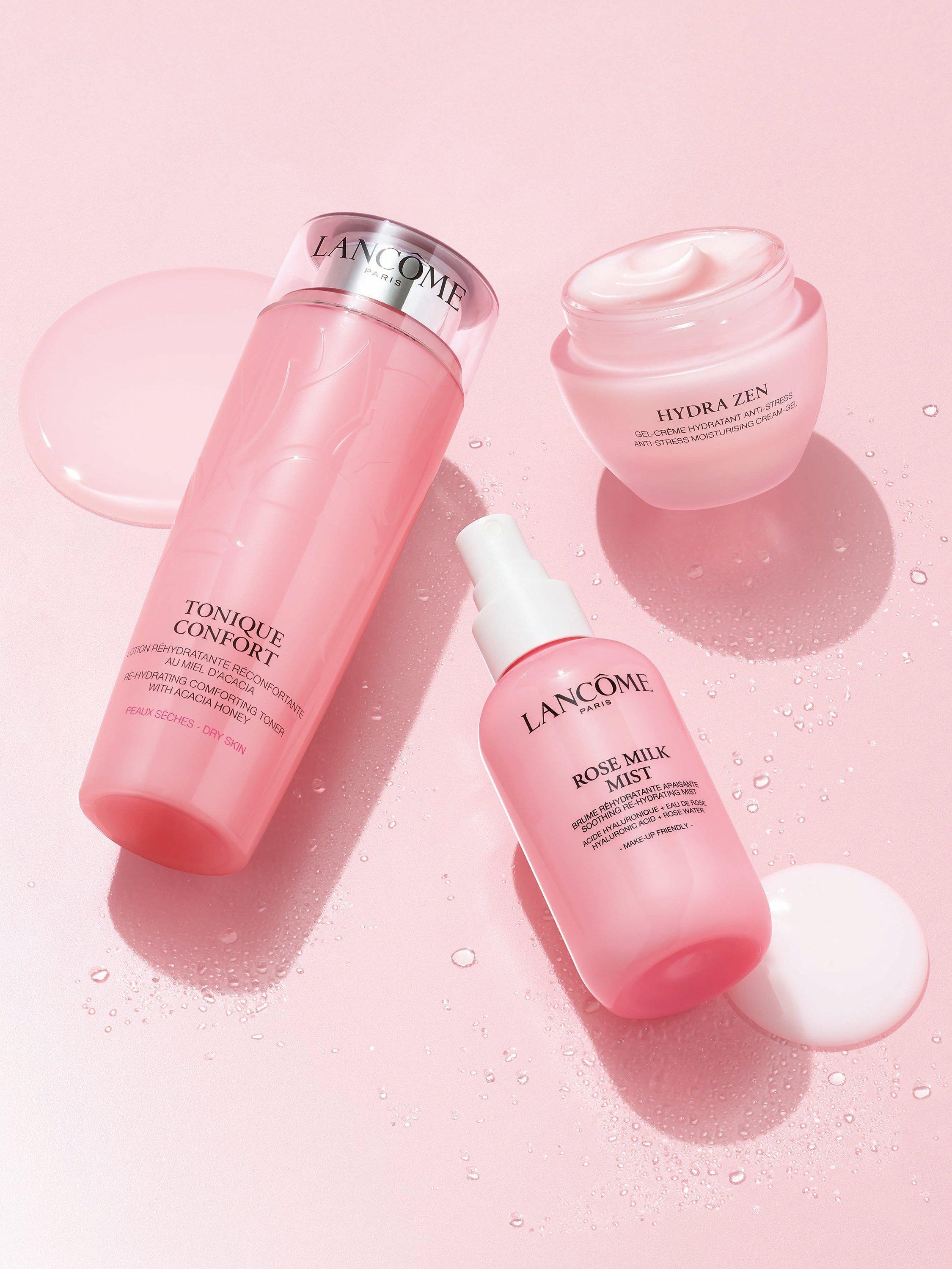 Lancôme introduces Rose Milk Face Mist, a hydrating solution that transforms from a milky emulsion into a lightweight and delightful cloud, which instantly quenches and refreshes dry, stressed and dull skin.