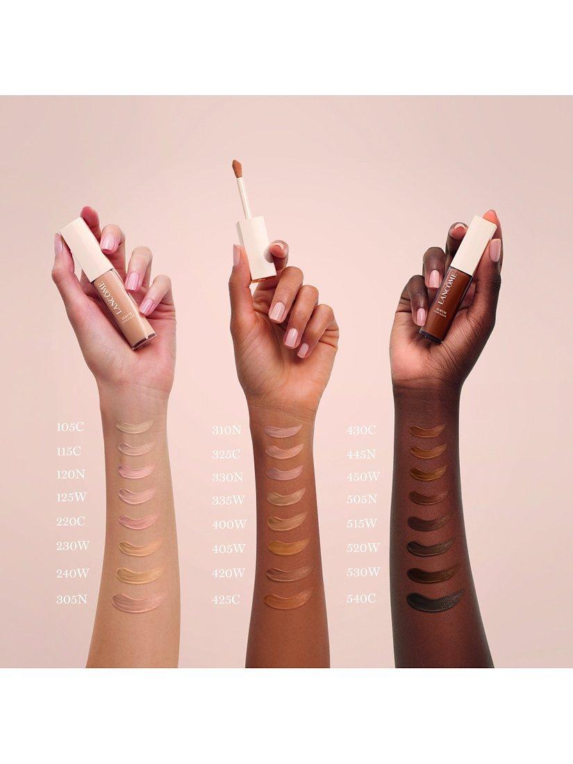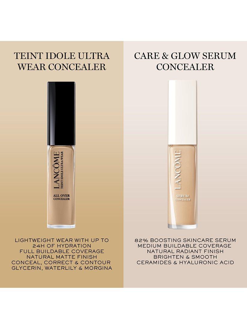 Teint Idole Ultra Wear Care & Glow Serum Concealer provides a glow that stands up to anything: it stays fresh all day without fading or settling in fine lines.