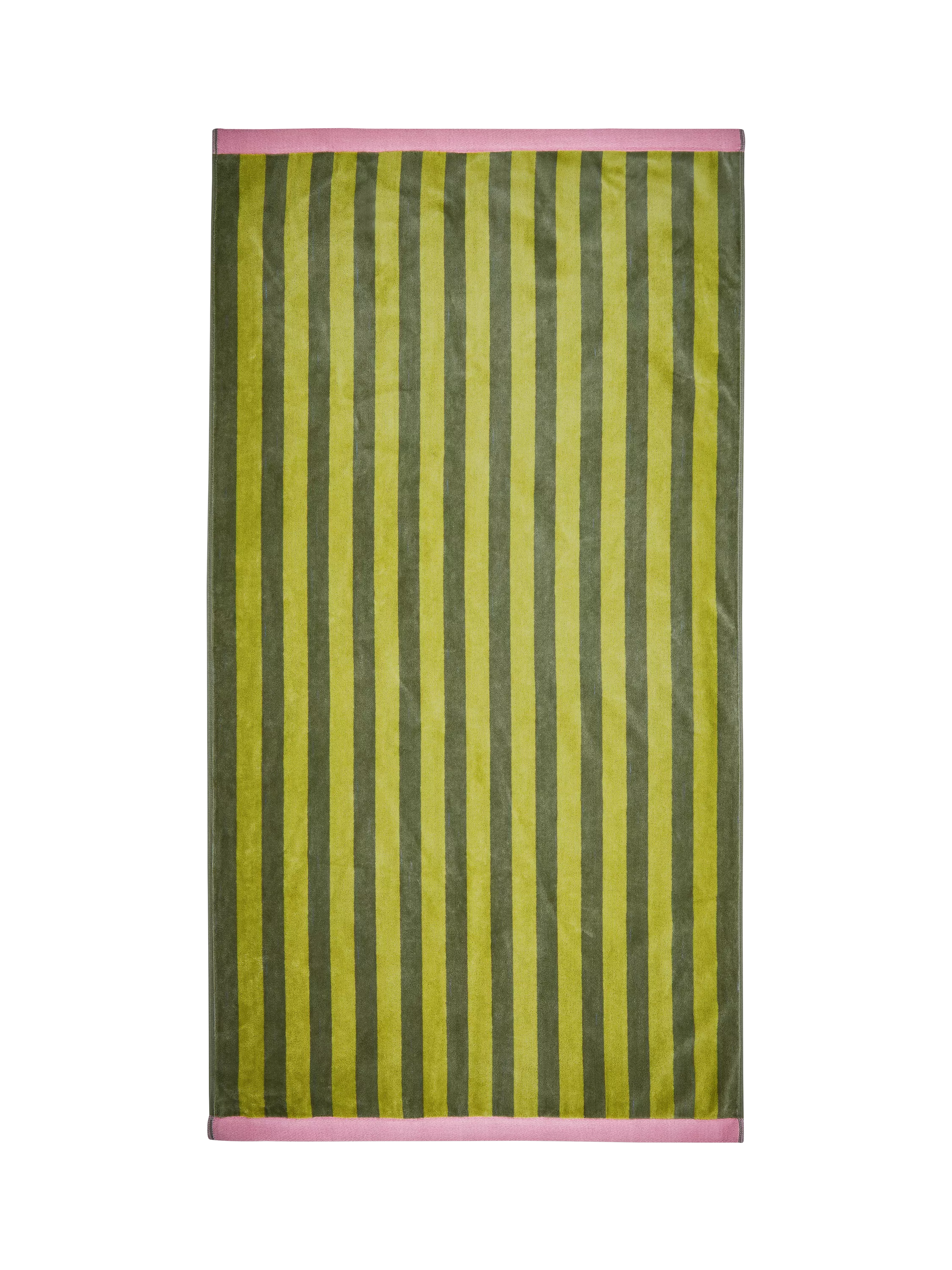 Triangular striped jacquard towels in green and blue, with hem detailing to the top and bottom. Perfect for giving your bathroom an instant boost of brightness.