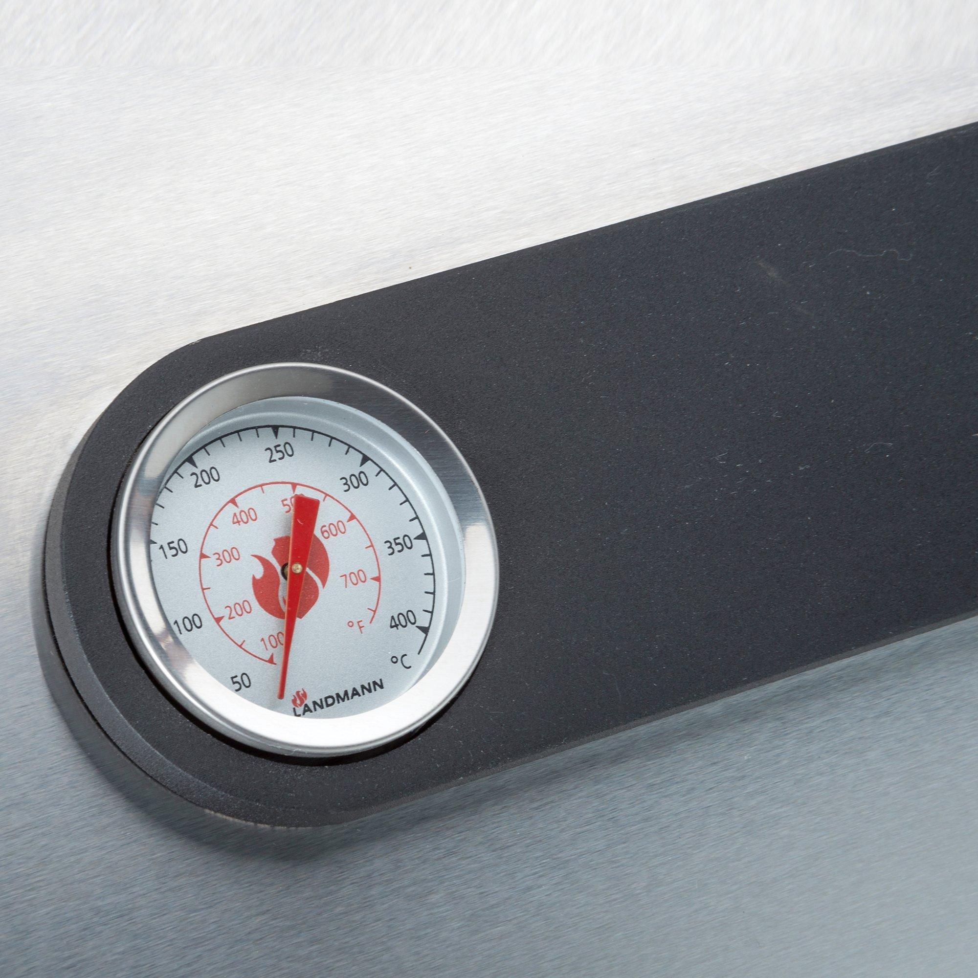 A lid thermometer helps you keep an eye on cooking progress while the warming rack is perfect for keeping sausages and buns warm. This model even includes a hotplate and is fitted with the new power thermal spreading system (PTS) for maximum cooking efficiency.