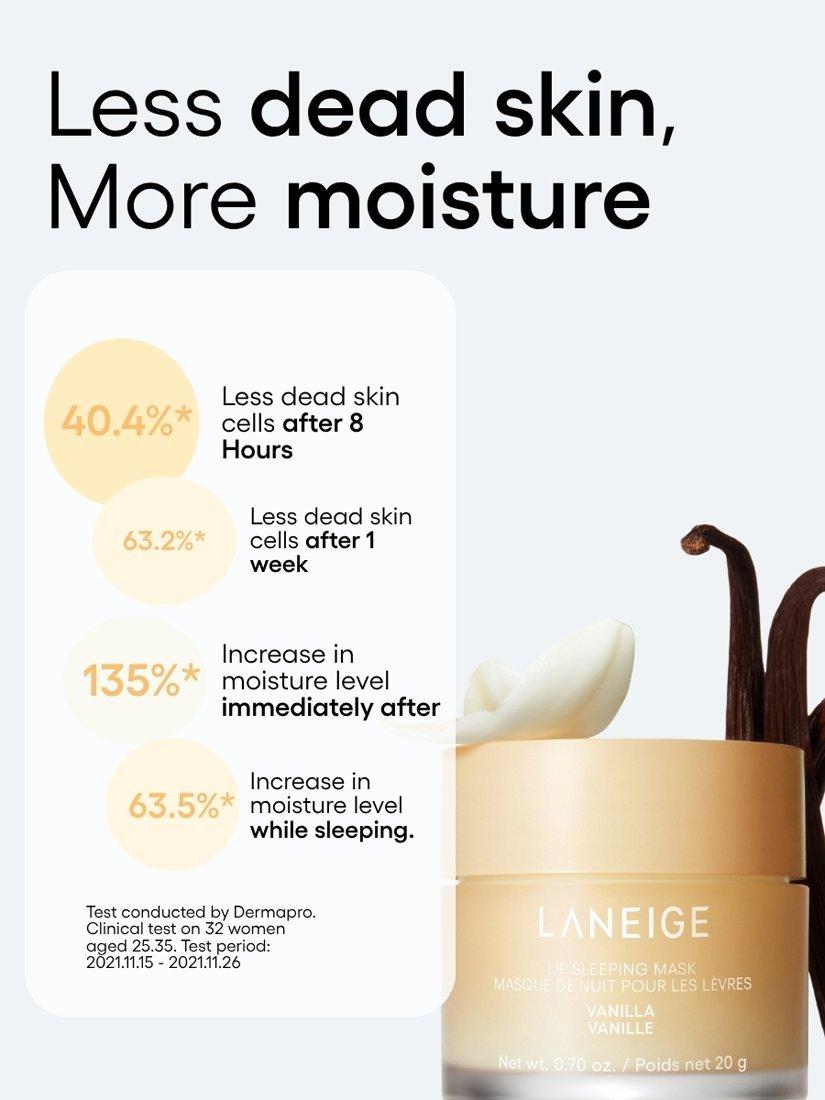 Discover the best-selling Laneige Lip Sleeping Mask, an ultra-nourishing formula that encourages soft, luscious lips. Available in mouth-watering flavours, the lip mask plumps the lips with intense moisture, helping to minimise roughness and cracking due to dryness.