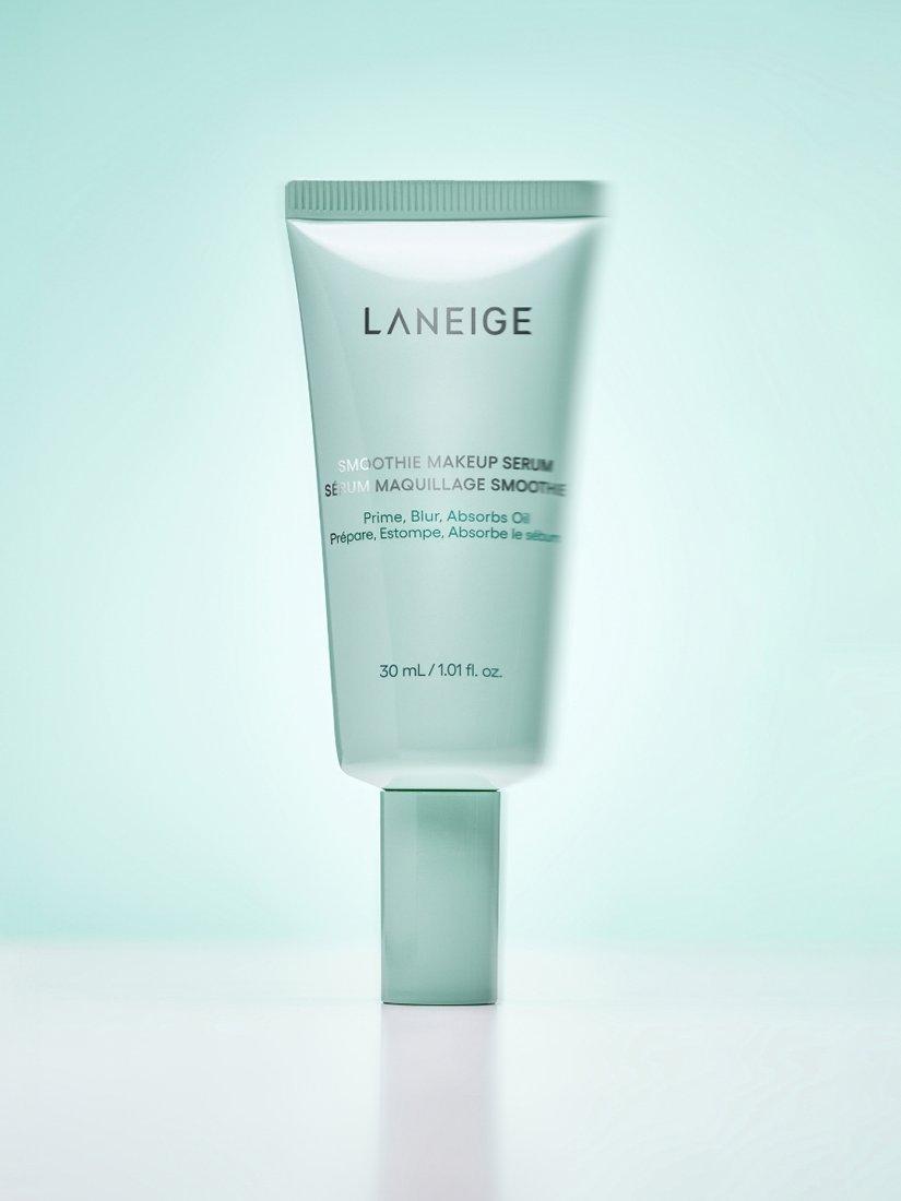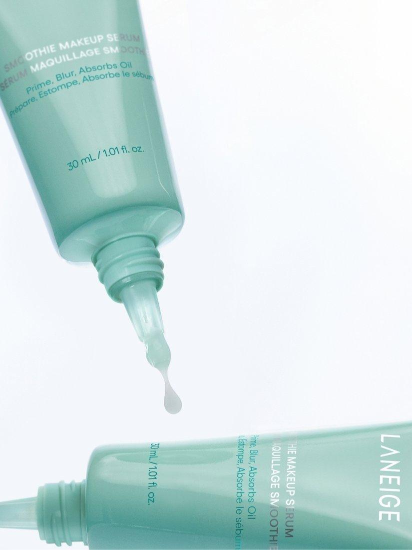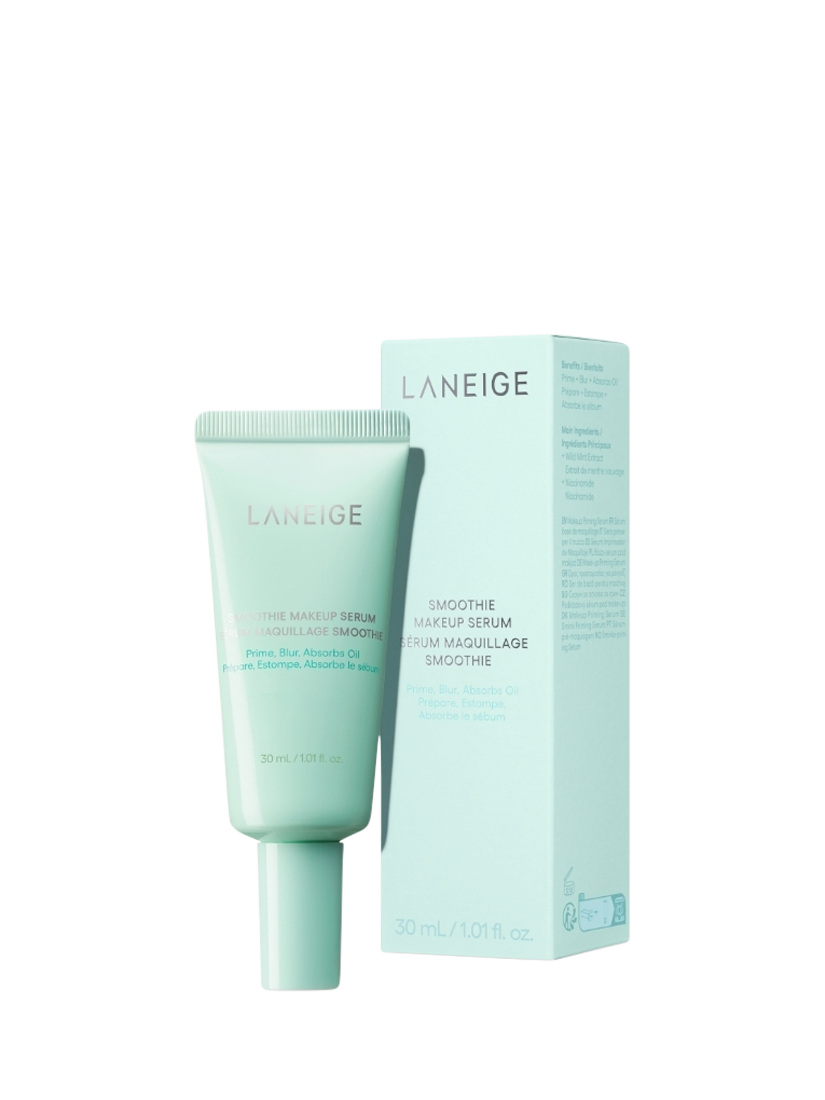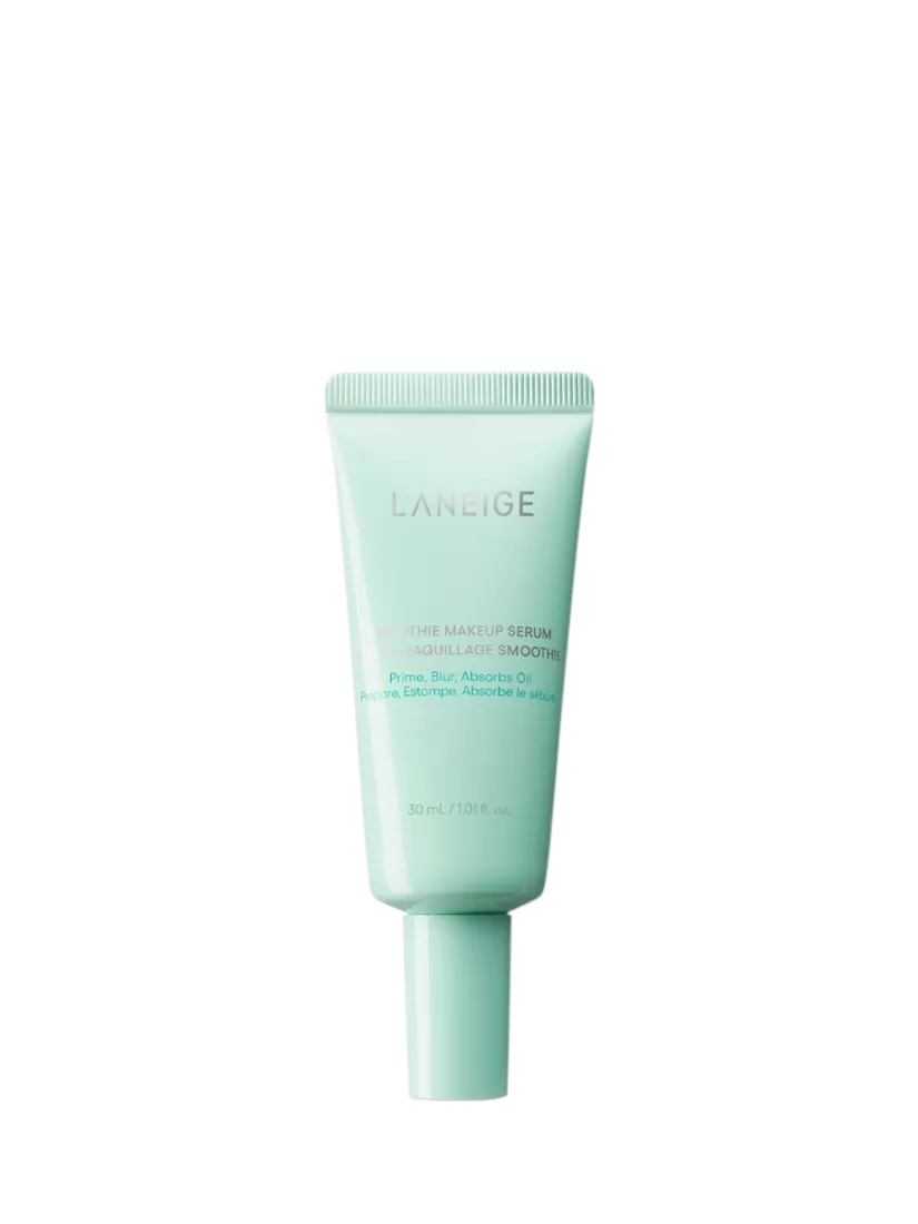 Laneige's Smoothie Makeup Serum is a lightweight, silicone oil-free primer-serum hybrid designed for oily, combination, and dehydrated oily skin. It contains 82% skin-caring ingredients, including ceramide, niacinamide, and beta-glucan, to help hydrate the skin and improve its texture.