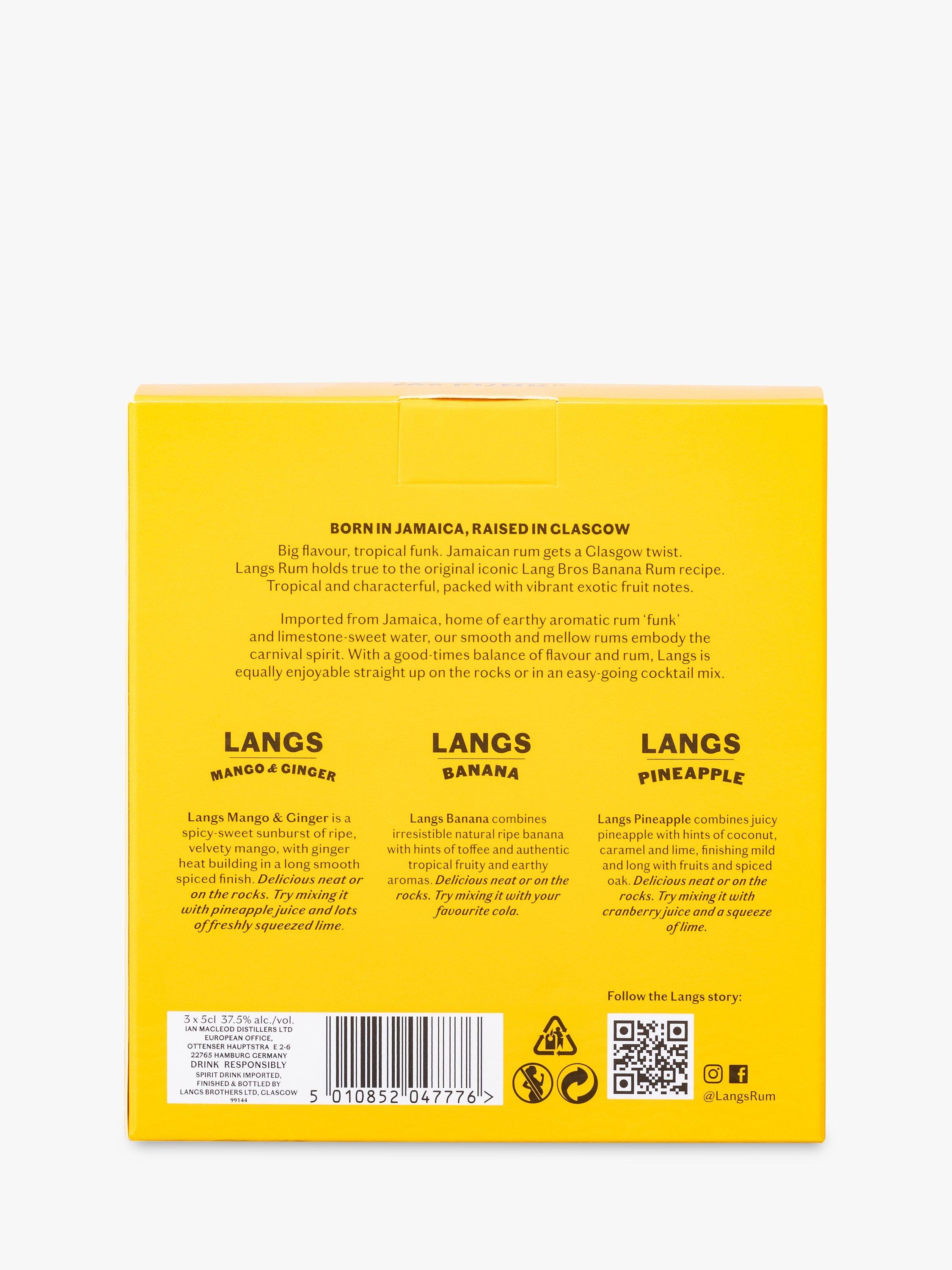 Langs Jamaican rum selection is the perfect gift for rum lovers. Presented in a gift pack these 5cl bottles include a miniature mango and ginger rum, a banana rum and a fruity pineapple rum. Give them a taste of liquid Jamaican sunshine to brighten up their day.