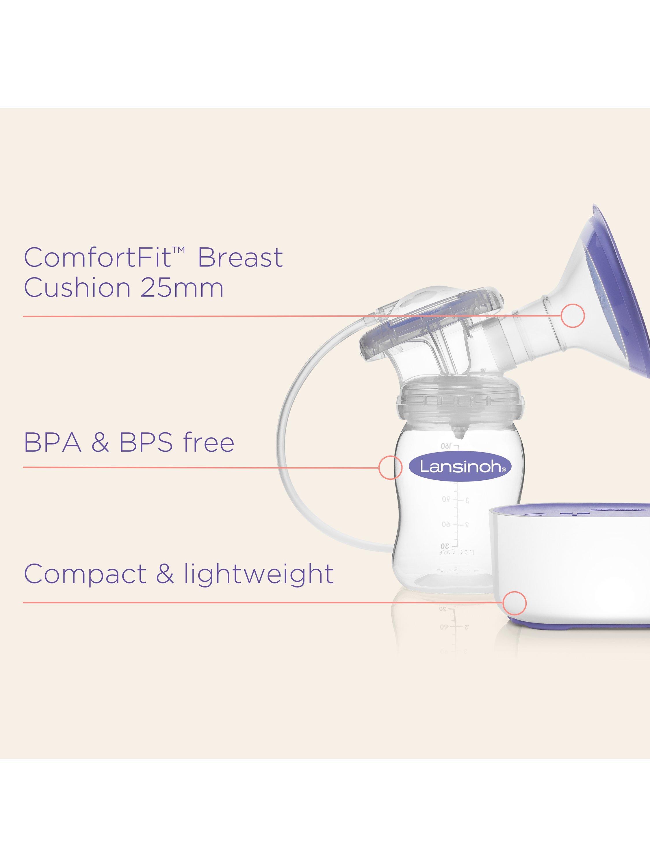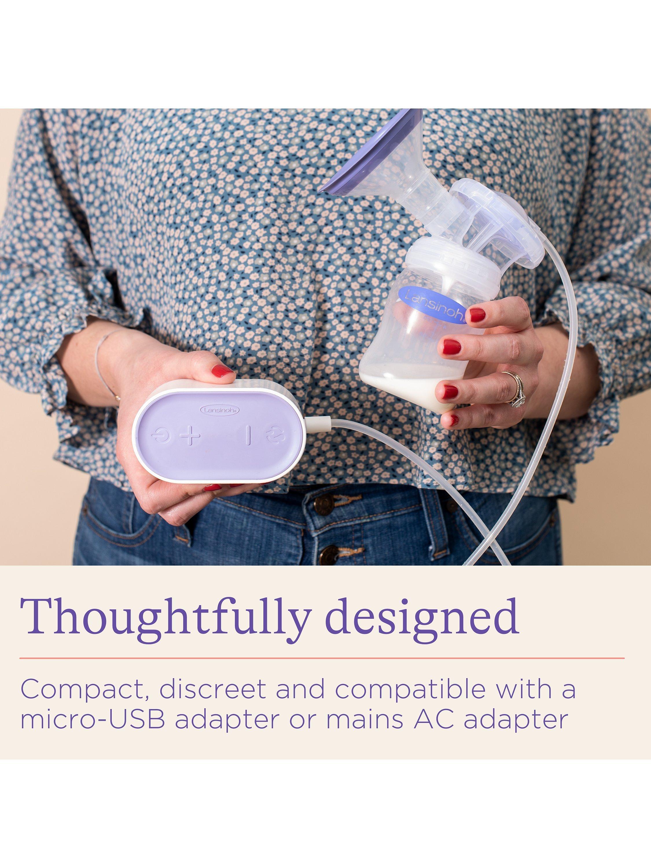 The Lansinoh Compact Single Electric Breast Pump is ideal for mums looking for a simple, portable way to express breastmilk with hospital grade suction levels. Thoughtfully designed, this expressing pump is lightweight, compact, discreet, and compatible with a micro-USB adapter or mains AC adapter making it perfect for on-the-go use.