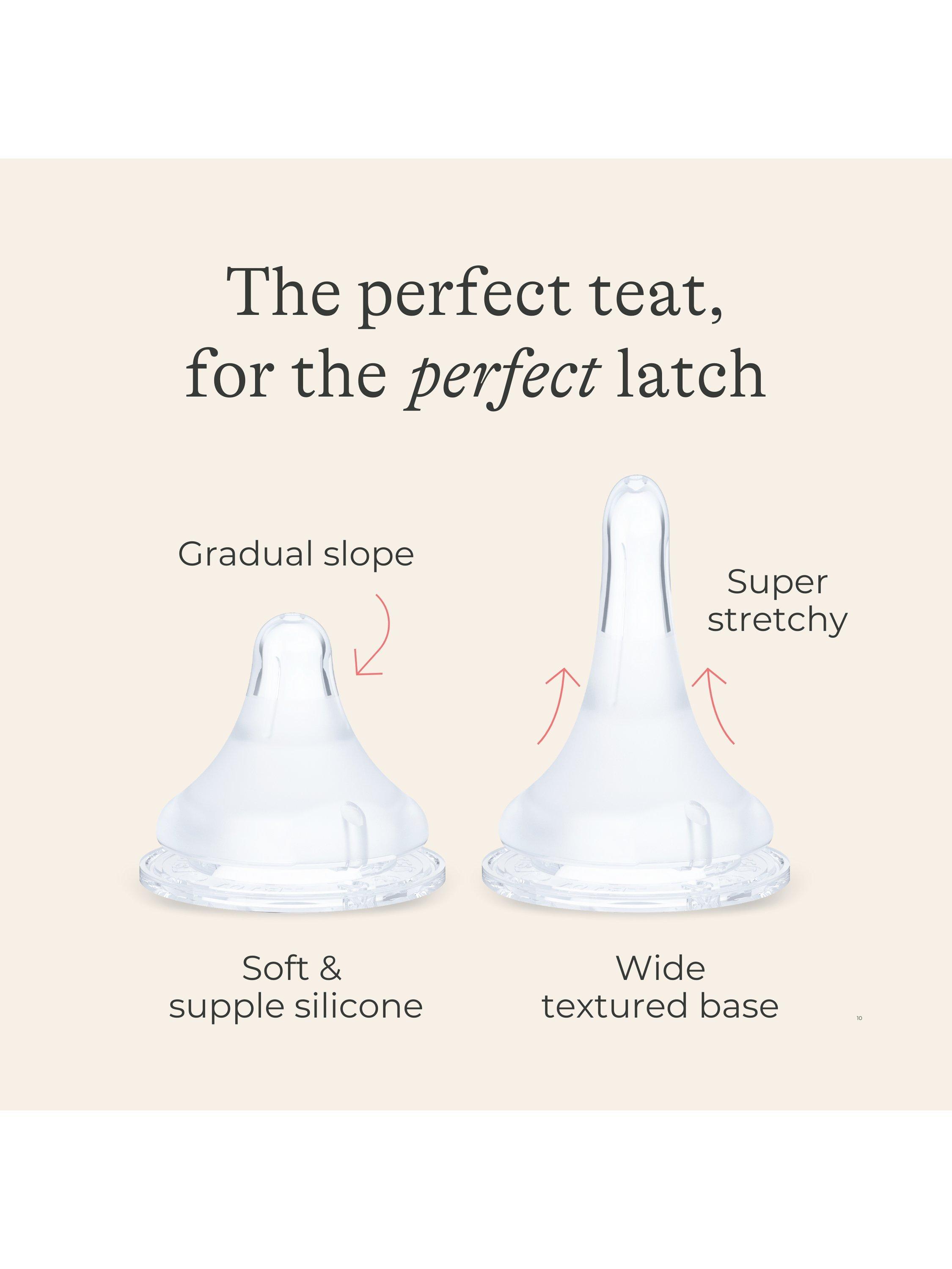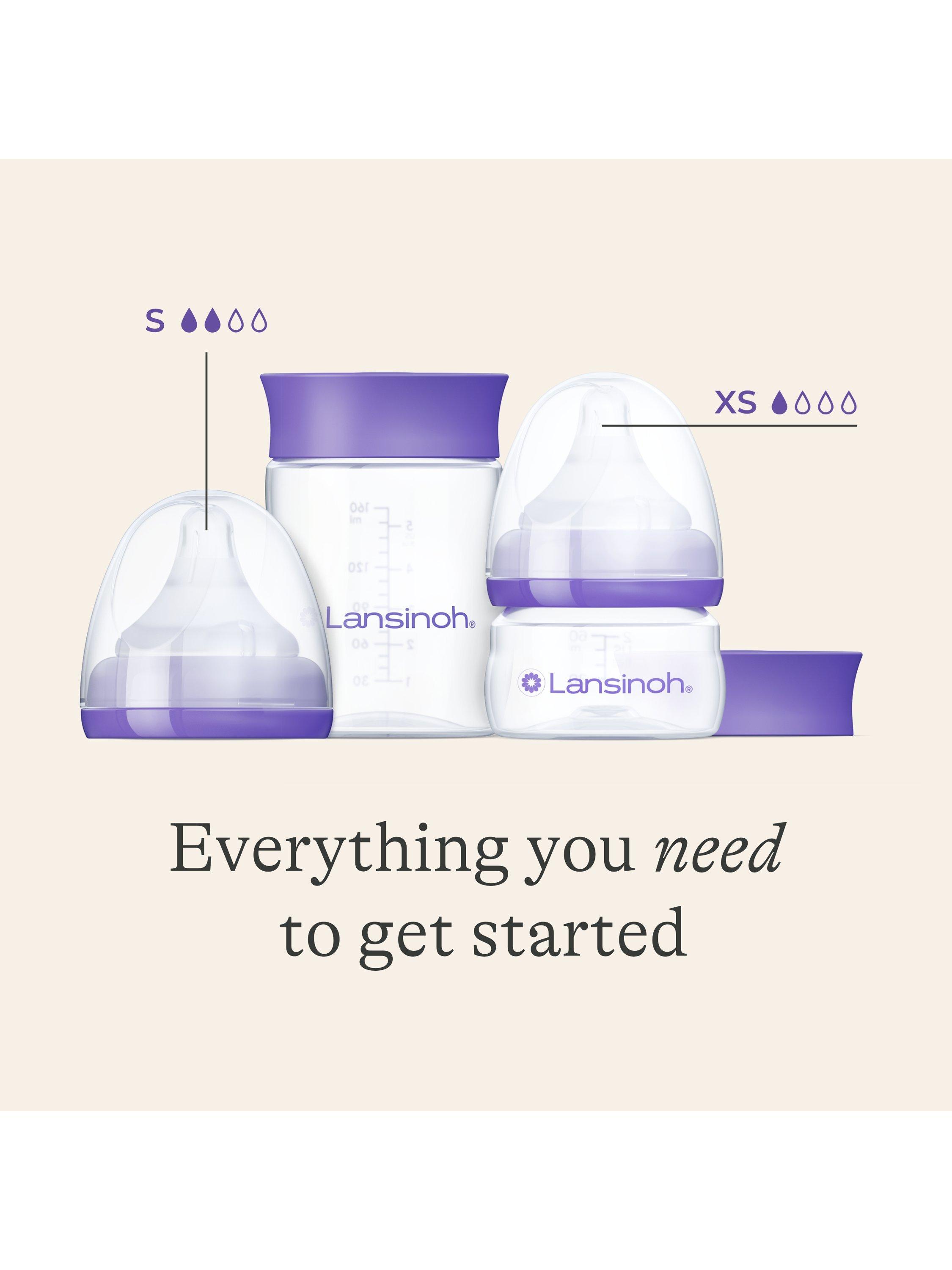 This starter set includes 1x 60ml bottle, 1x 160ml bottle, an XS (newborn) and S (1 month+) teat.
