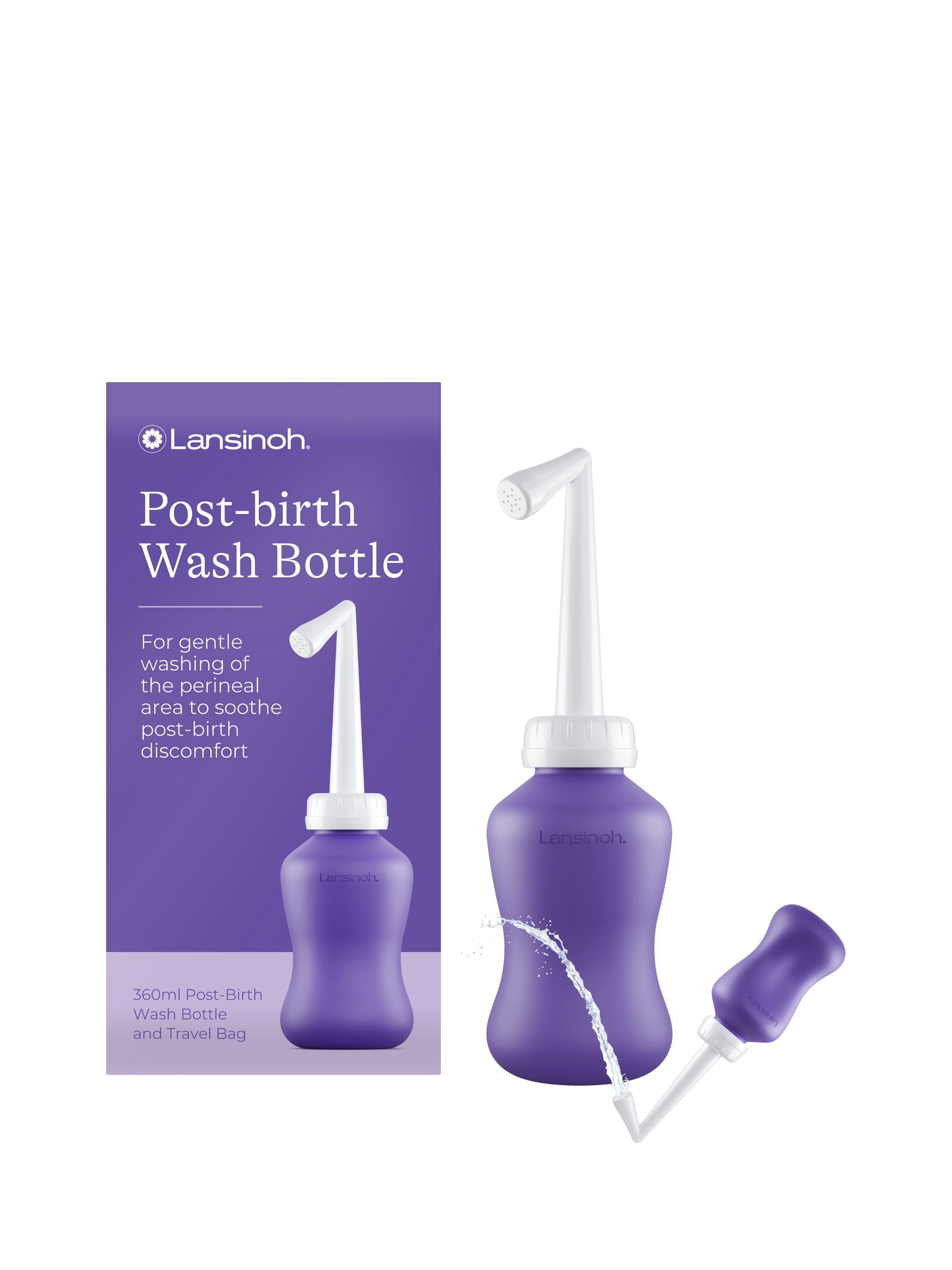 Following childbirth, the perineal area can be left stressed and tender. The Lansinoh Post-Birth Wash Bottle gently washes this sensitive area, soothing post-birth discomfort and diluting urine with a cleansing stream of water. This award-winning cleaning bottle can hold up to 360ml of water and can be easily used upside down, cleansing hard-to-reach areas with little fuss. Ergonomically designed, the collapsible spout and waterproof storage bag make it portable and discreet.
