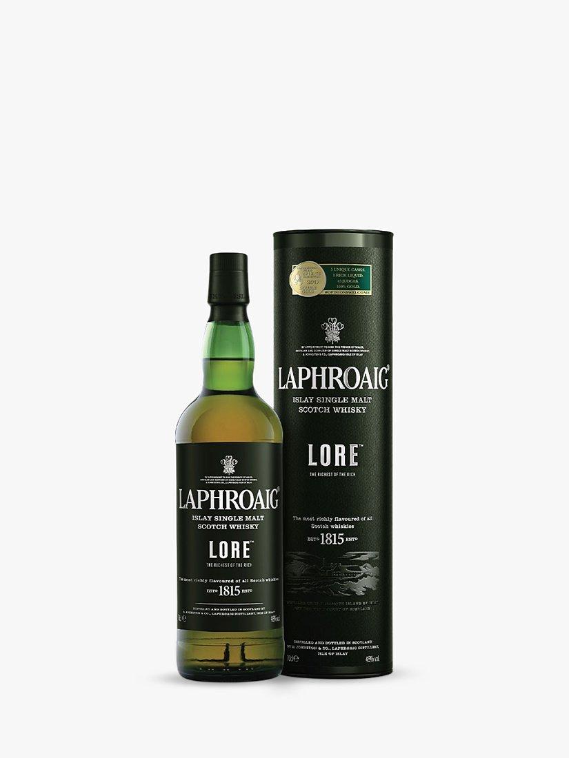 Laphroaig Lore is a complex marriage of ages and classical styles. The marriage draws from the peaty power of Laphroaig but with the smoothness of double-matured stock finished in European oak hogsheads. For further depth and complexity, Laphroaig uses the most heavily peated whisky, matured in ex-Laphroaig barrels, along with some fully sherry-matured casks. The result is stunningly complex.